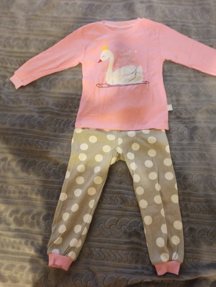 симпатичная хлопковая пижамка хорошего качества.Цвет ярче,чем на фото,доставка в Украину в течении двух недель.На рост 114 см заказывала размер 5т. Обязательно буду заказывать еще