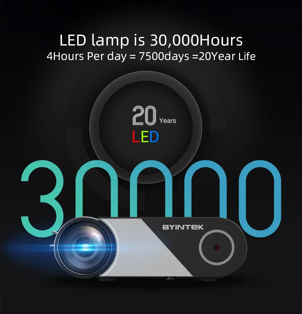 Срок службы диода – 30.000 часов. Если использовать проектор по 5 часов в день, диод прослужит 10 лет.