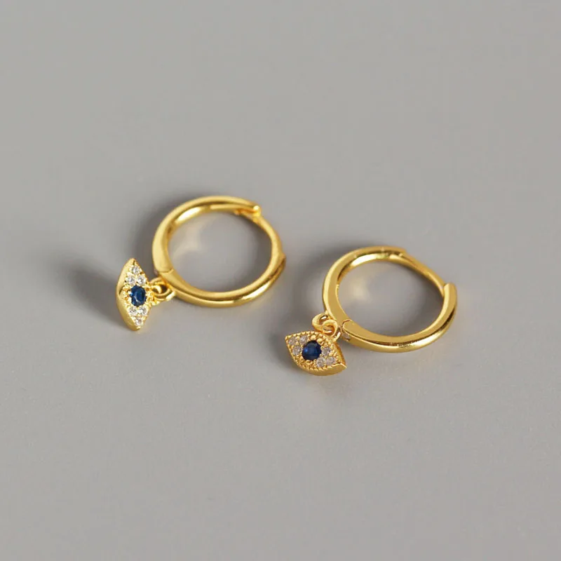 Женские серьги-кольца ANENJERY, серьги из стерлингового серебра 925 пробы с голубыми глазами, простые милые серьги с цирконием, Ретро ювелирные изделия, оптовая продажа