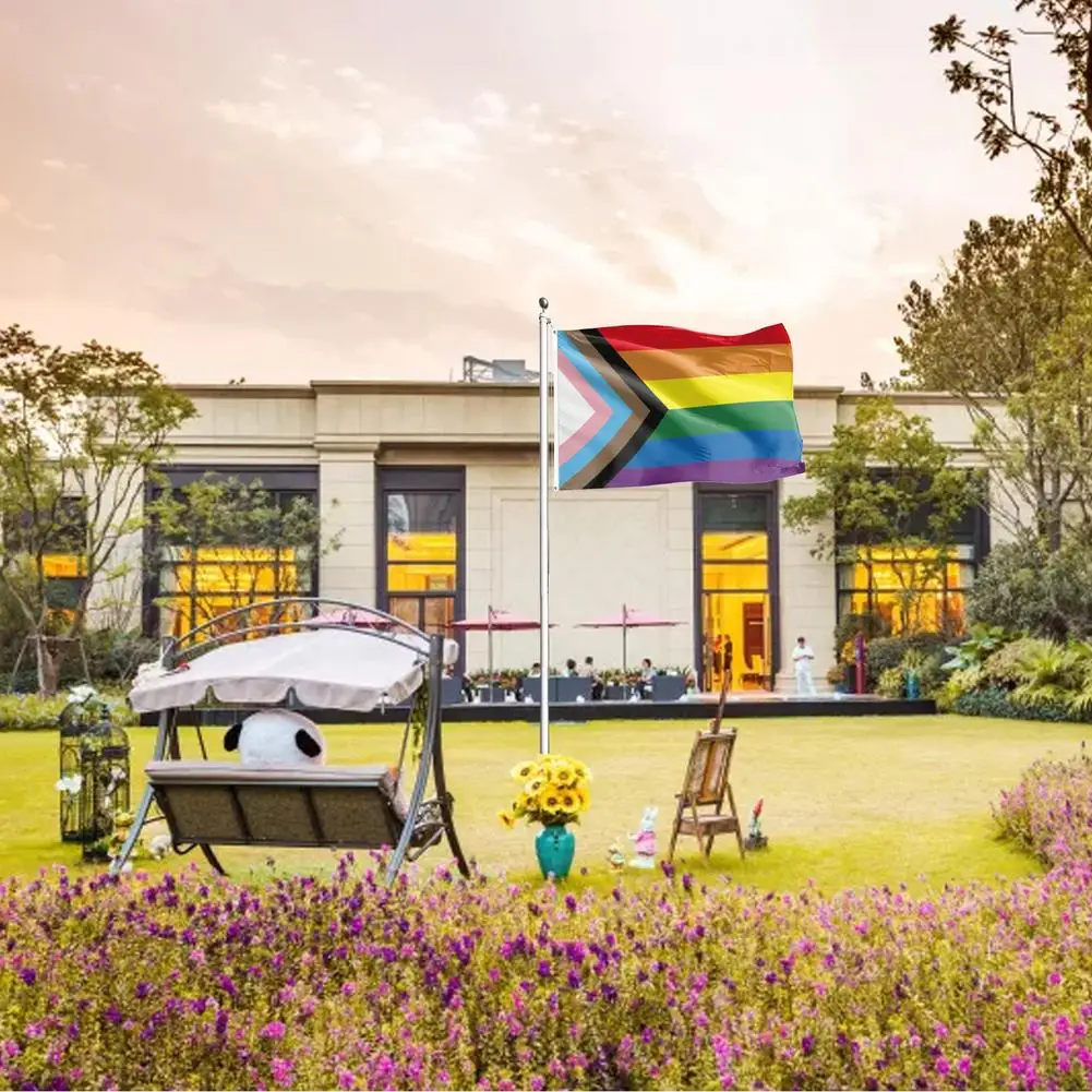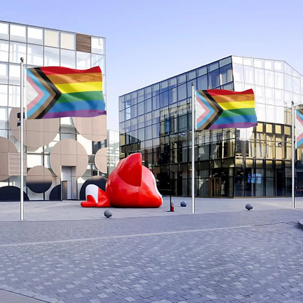 Радужный Флаг прогресс гордыня флаг баннер на открытом воздухе Би небинарные лесбиянок ЛГБТ гей Радужный Флаг 2 латунные люверсы 90х15 0/60х90см