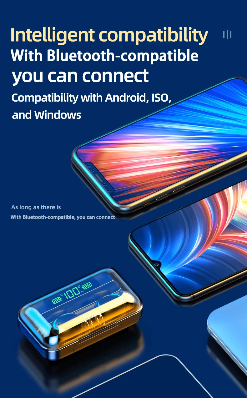 Описание товараОсобенности продукта:1, Bluetooth-совместимый V5.0, поддерживает большинство bluetooth-совместимых устройств и низкое энергопотребление2, 2000 мАч зарядный чехол может полностью заряжать 2 наушника около 10-15 раз, предлагаем больше времени для прослушивания музыки.3, с водонепроницаемой технологией IPX7, больше не нужно беспокоиться о воде и поте4, 8MMS двойной привод, наслаждайтесь 9D сильным глубоким басом и музыкальным звуком5, популярная функция сенсорного управления, поддержка коммутационных песен, телефонных звонков и голосовых вызовов.Примечание:1. Выньте гарнитуру, вы увидите красные и синие огни, мигающие на двух гарнитурах2. Дважды нажмите на один из наушников и подождите около 10 секунд3. Вы заметите, что одна из наушников только синяя.4. Затем откройте Поиск телефона с поддержкой Bluetooth в "F9"Параметр:Версия Bluetooth: TWS V5.0Рабочий диапазон: 10 м (без препятствий)Время воспроизведения музыки: 4-5 часовВремя работы в режиме ожидания: около 90 часовВремя зарядки наушников: около 1 часаВремя зарядки: около 2-3 часовЕмкость аккумулятора наушников: 50x2 мАчЕмкость зарядного устройства: 2000 мАчСписки аксессуаров:2 * наушники1 * чехол для зарядки3 * колпачки для ушей1 * USB кабель1 * Руководство пользователя