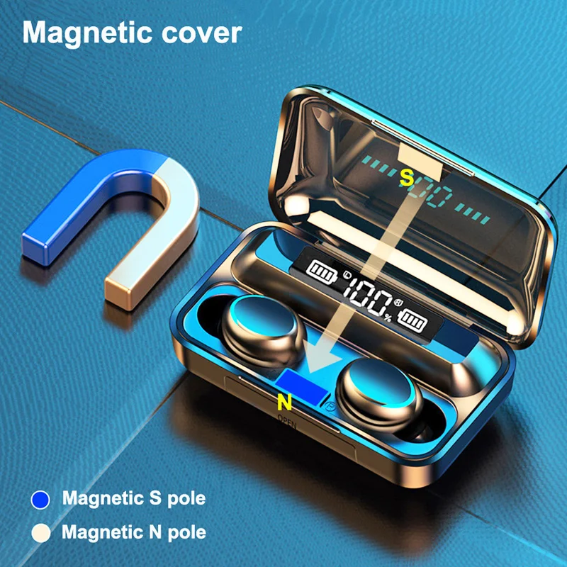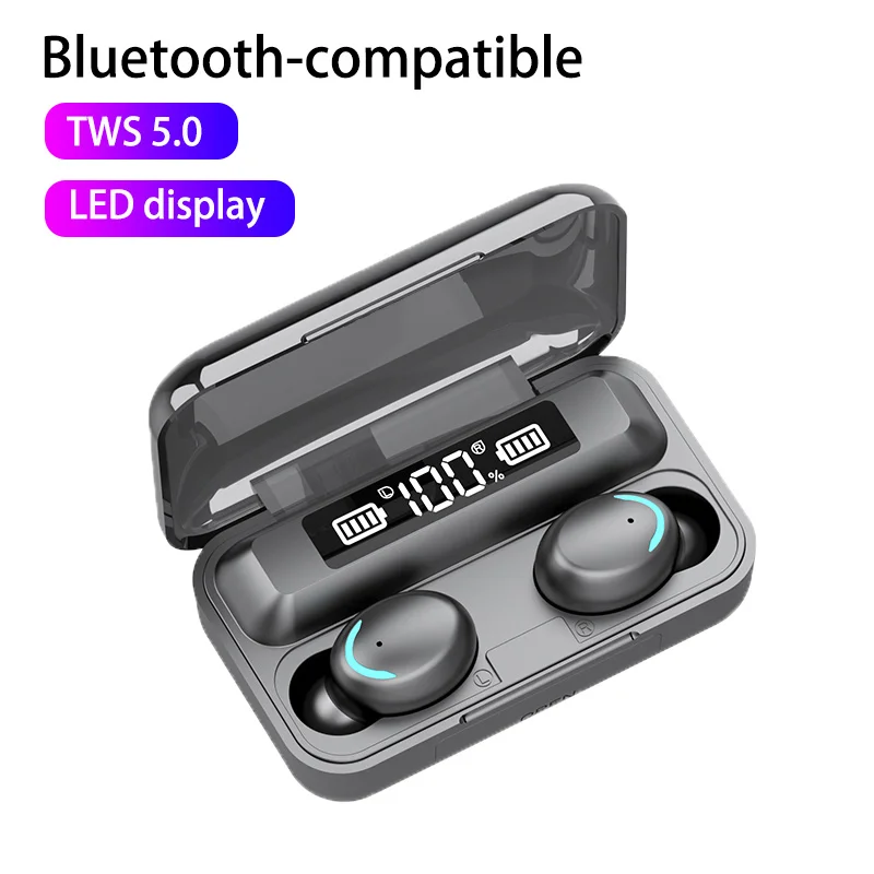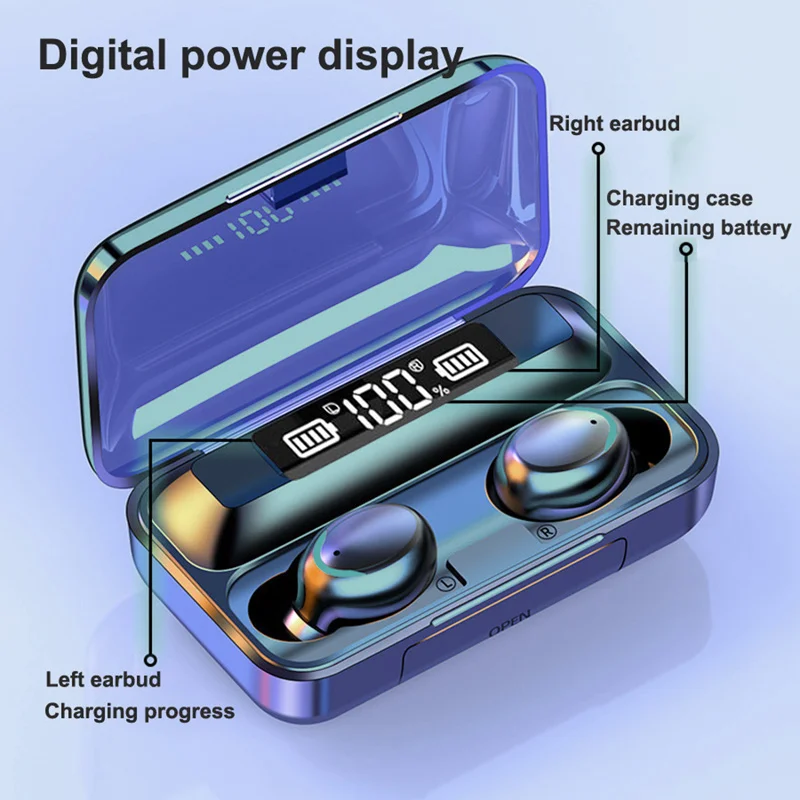 TWS-стереонаушники F9 с поддержкой Bluetooth 5,0 и зарядным футляром