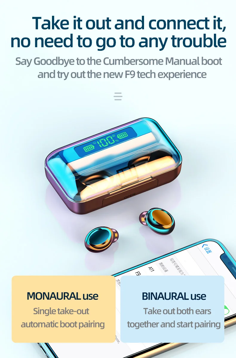 TWS-наушники F9 с поддержкой Bluetooth 5,0 и внешним аккумулятором ...