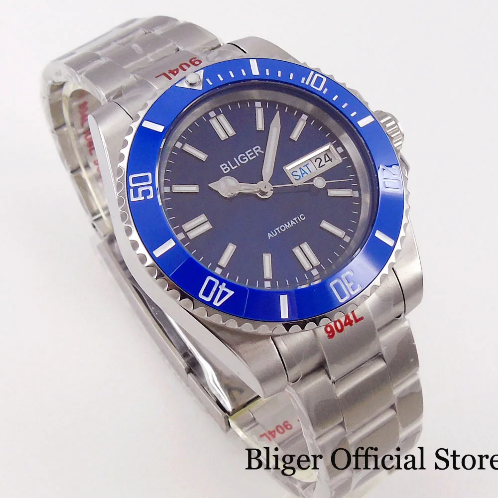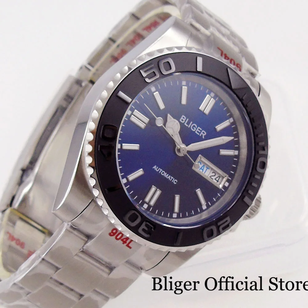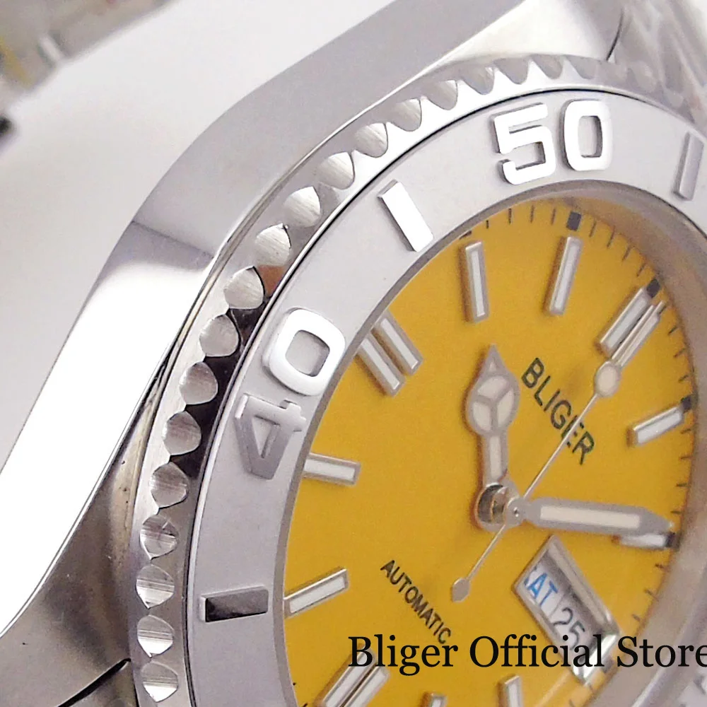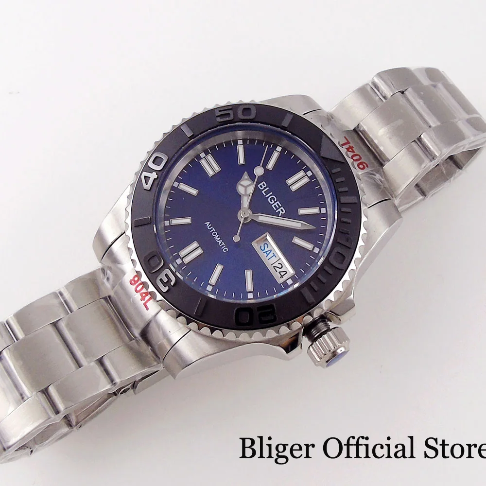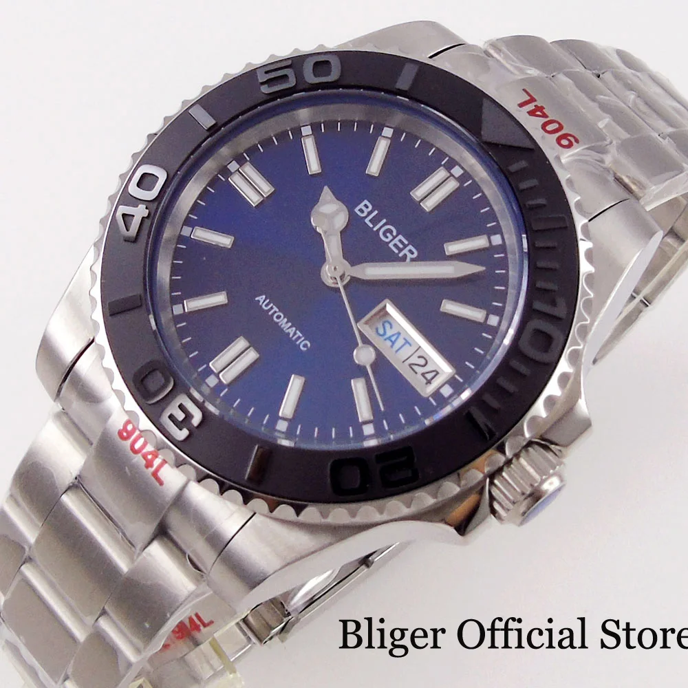 Новинка, мужские наручные часы BLIGER небесно-голубого цвета NH36A Move, мужские наручные часы с автоподзаводом, матовая серая вставка, устричная скользящая застежка, окно на выходные дни