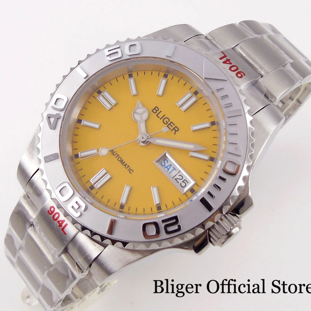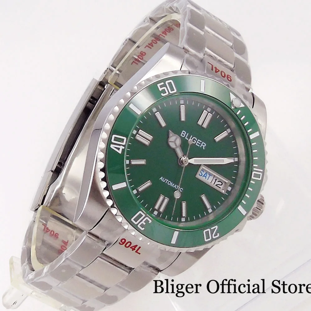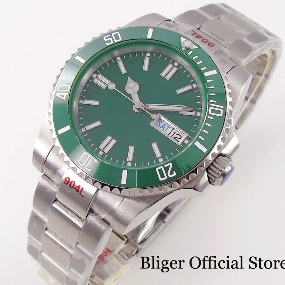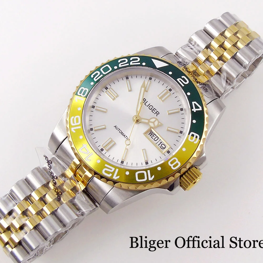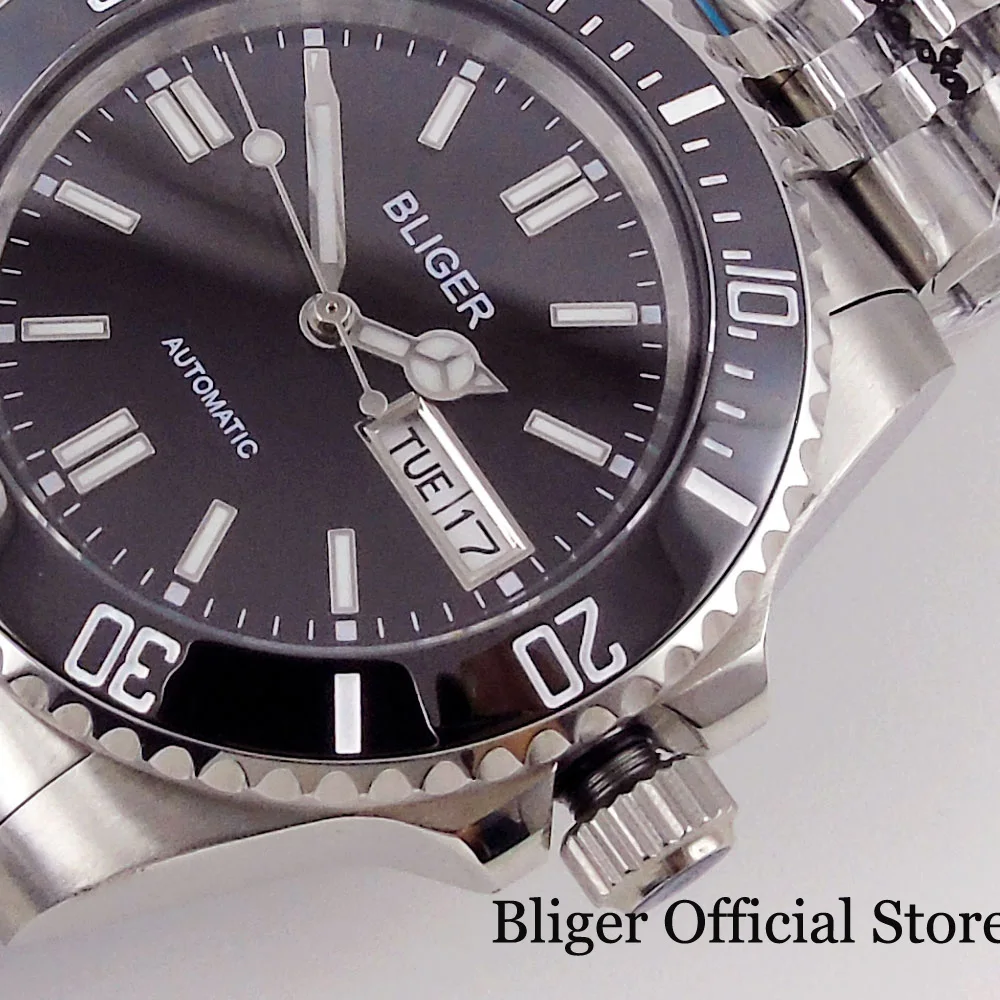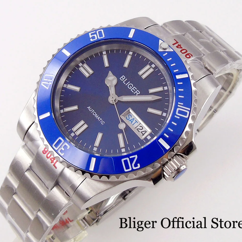 Новинка, мужские наручные часы BLIGER небесно-голубого цвета NH36A Move, мужские наручные часы с автоподзаводом, матовая серая вставка, устричная скользящая застежка, окно на выходные дни