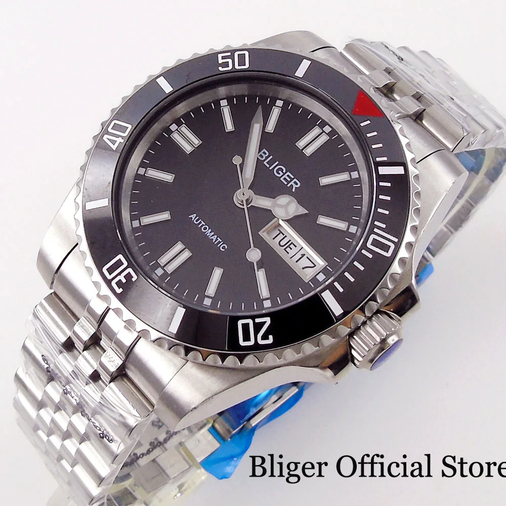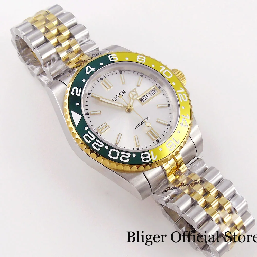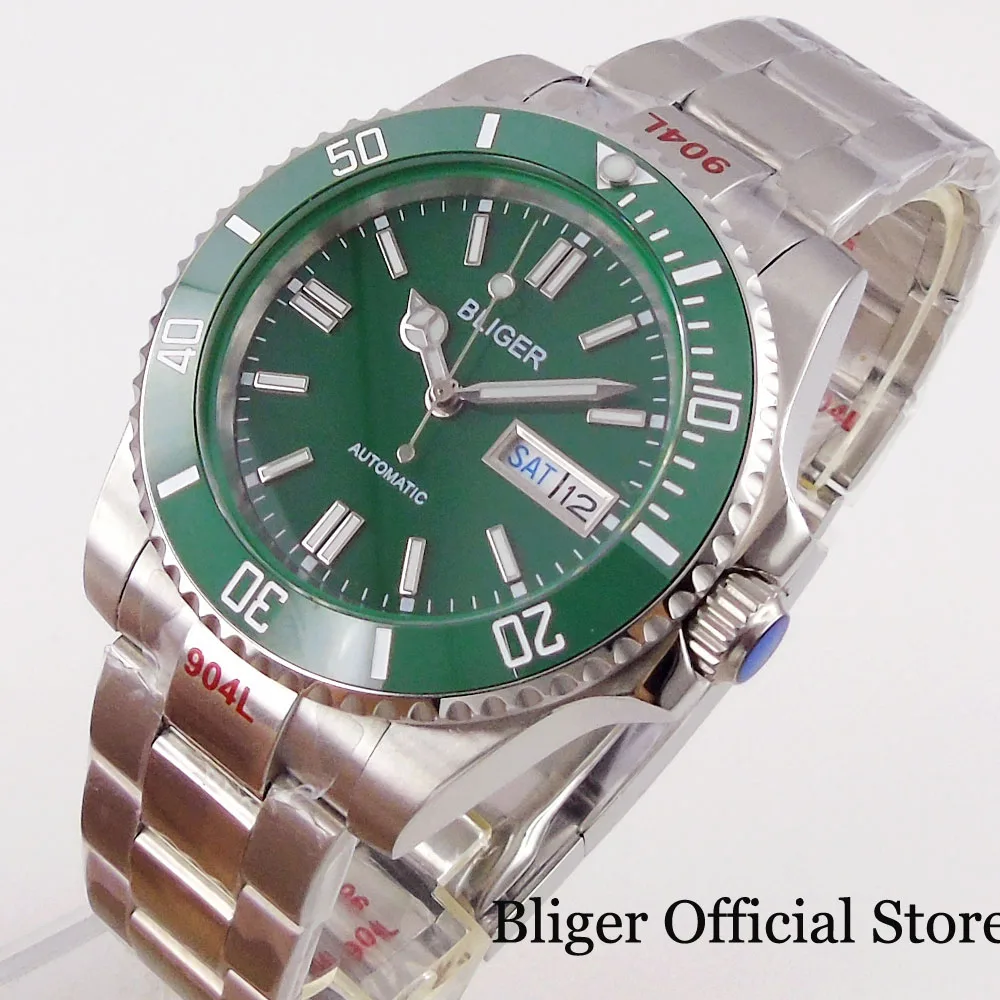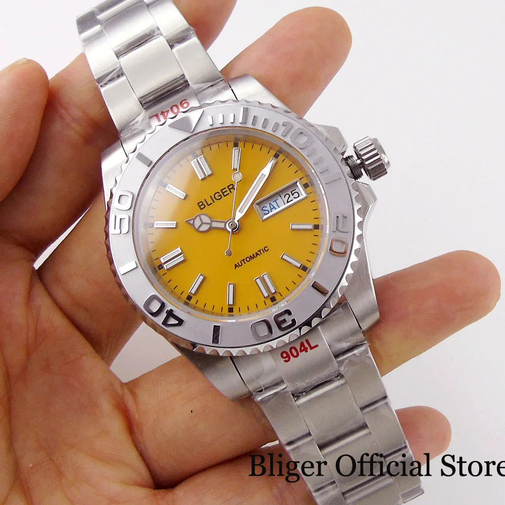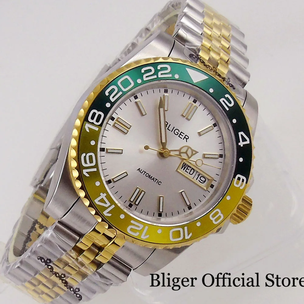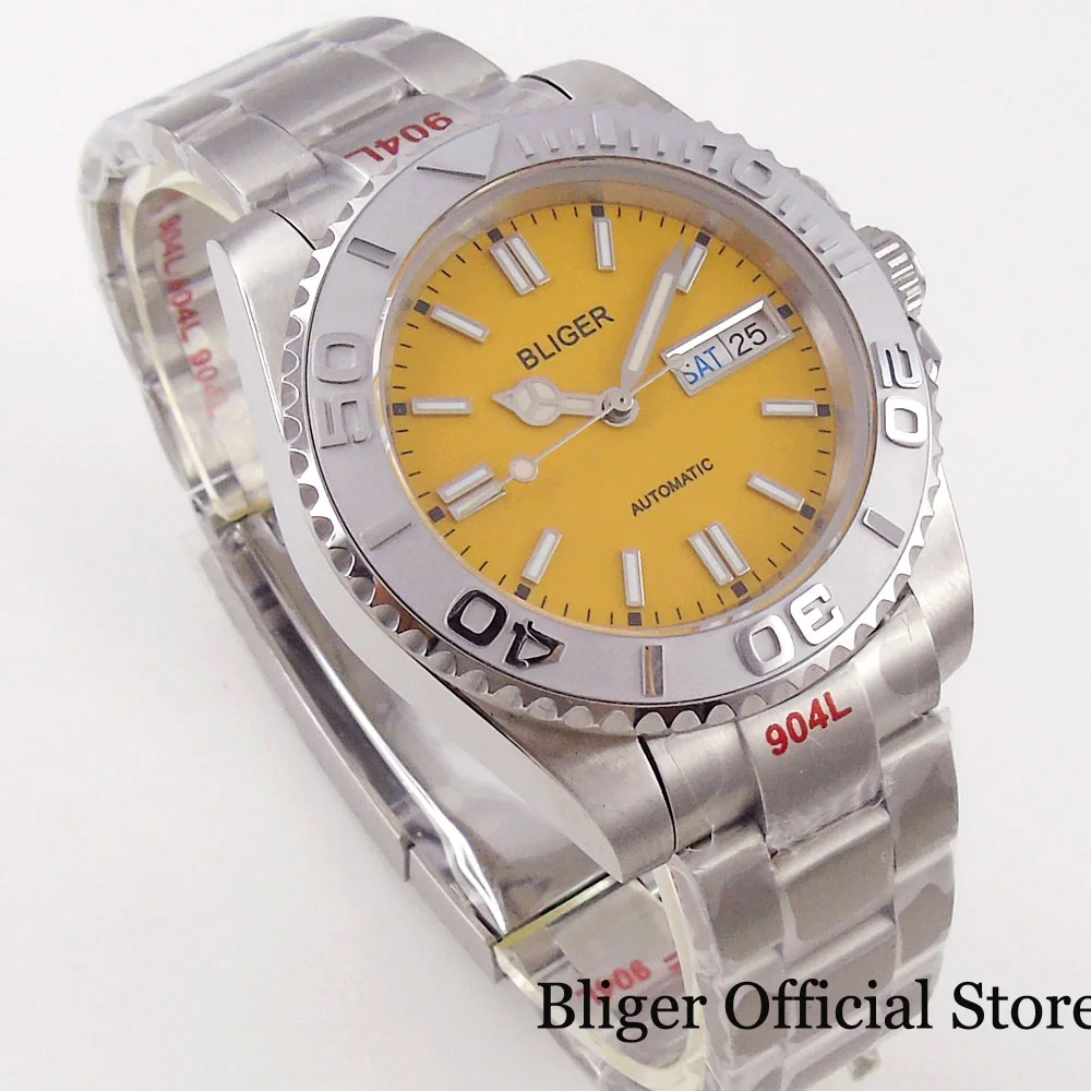Новинка, мужские наручные часы BLIGER небесно-голубого цвета NH36A Move, мужские наручные часы с автоподзаводом, матовая серая вставка, устричная скользящая застежка, окно на выходные дни