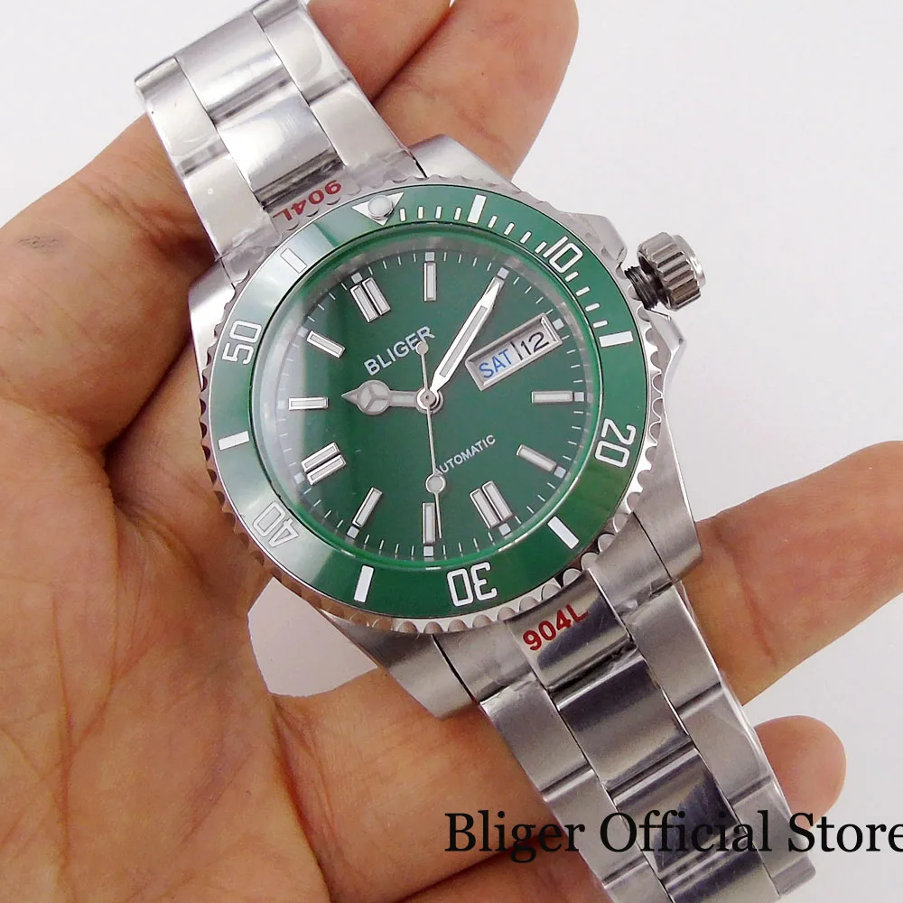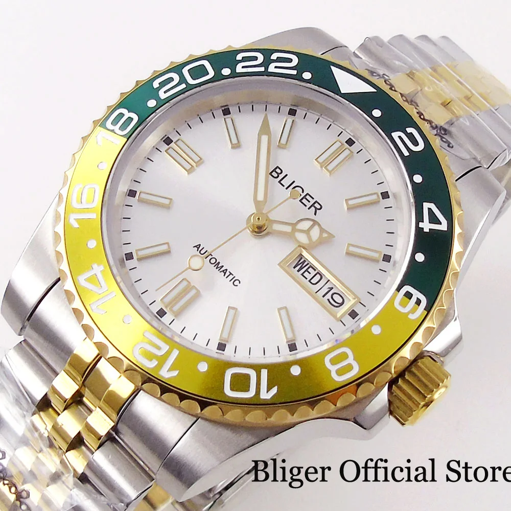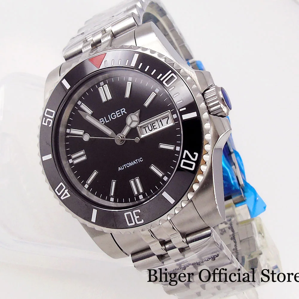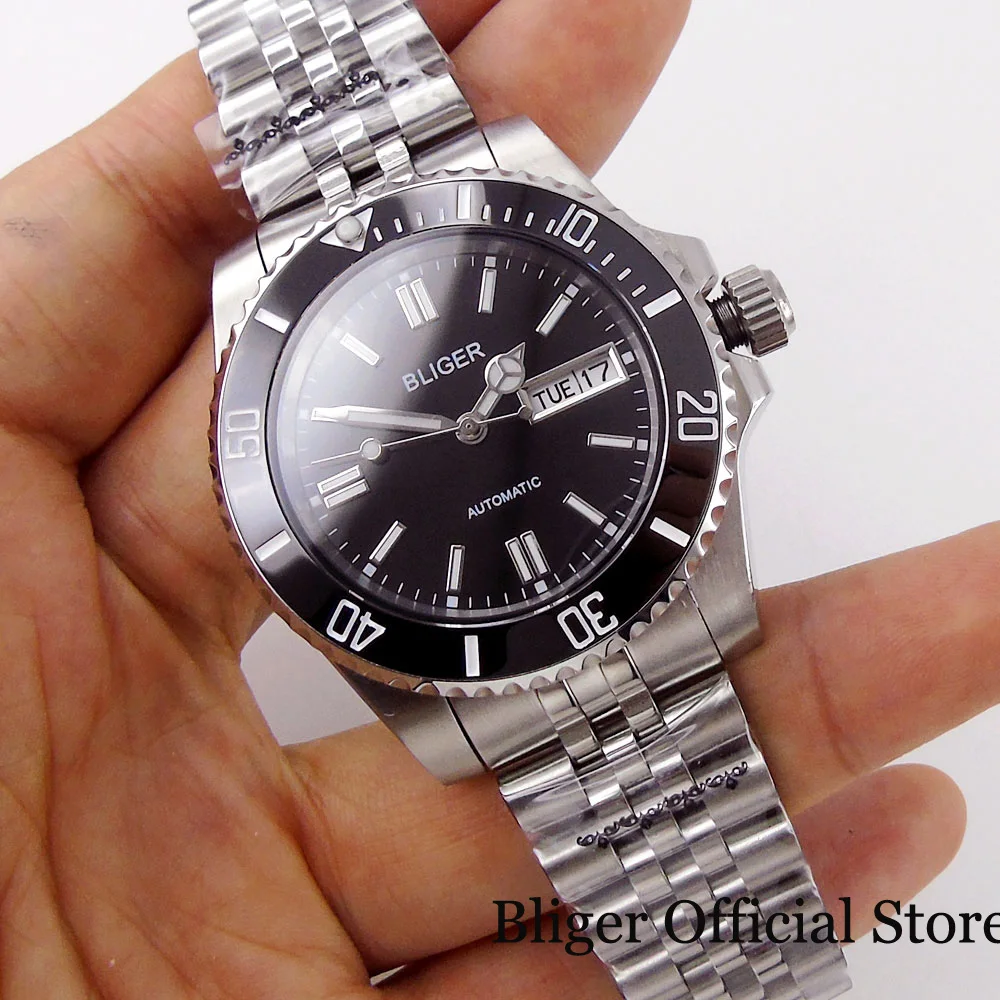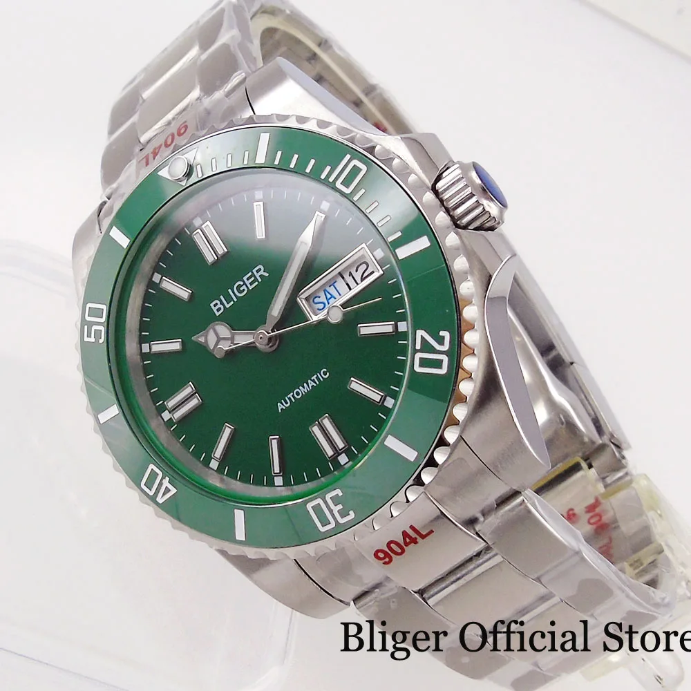 Новинка, мужские наручные часы BLIGER небесно-голубого цвета NH36A Move, мужские наручные часы с автоподзаводом, матовая серая вставка, устричная скользящая застежка, окно на выходные дни