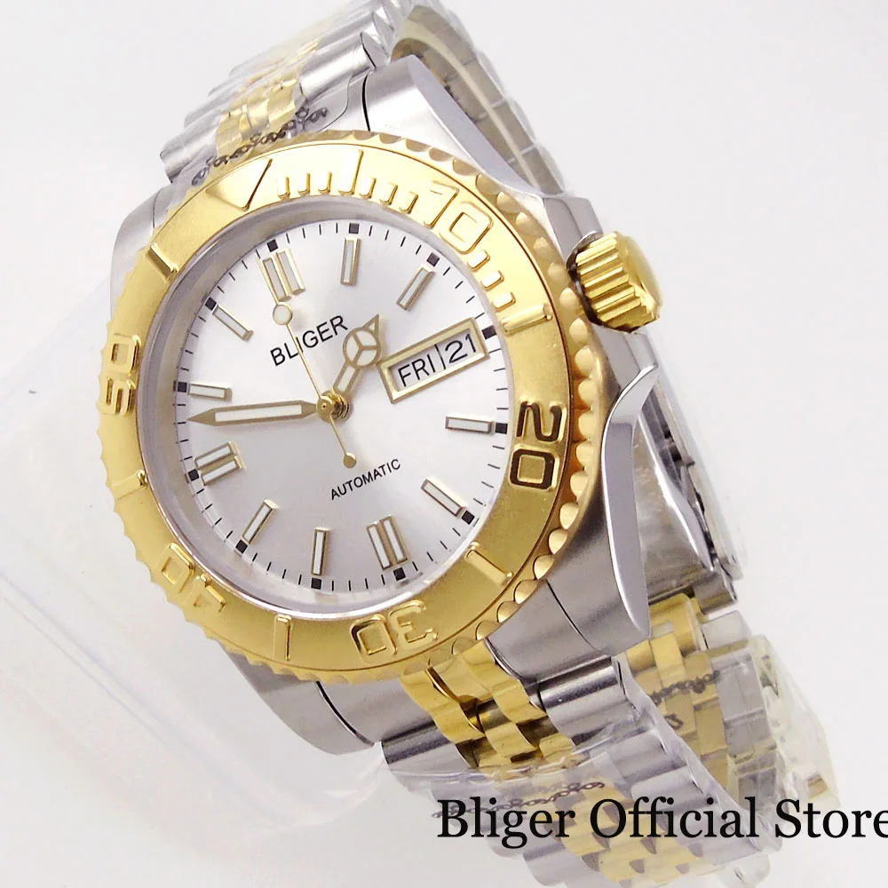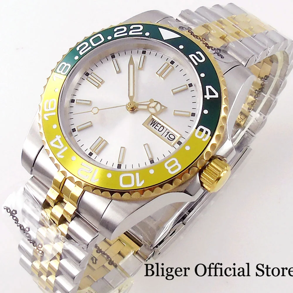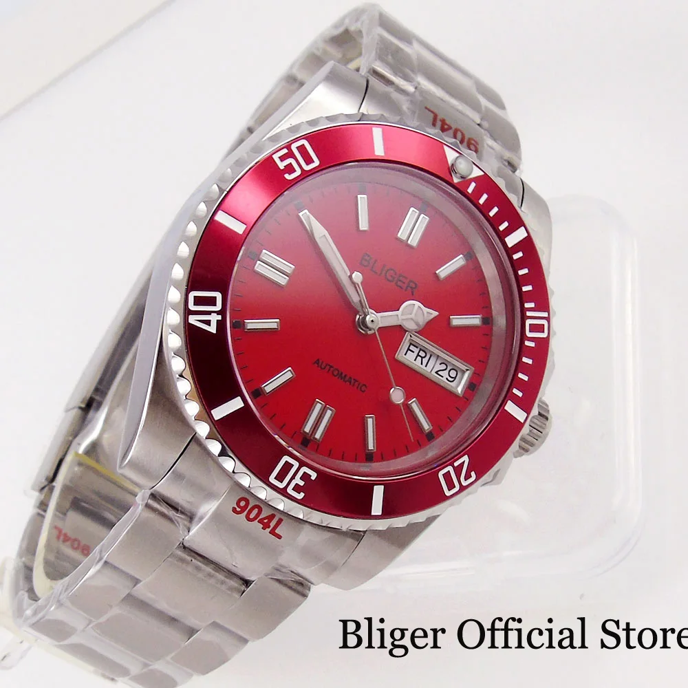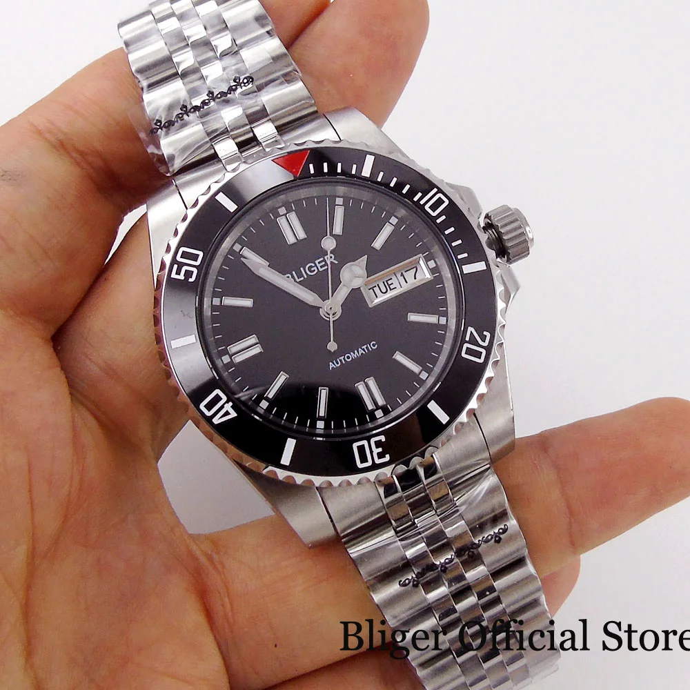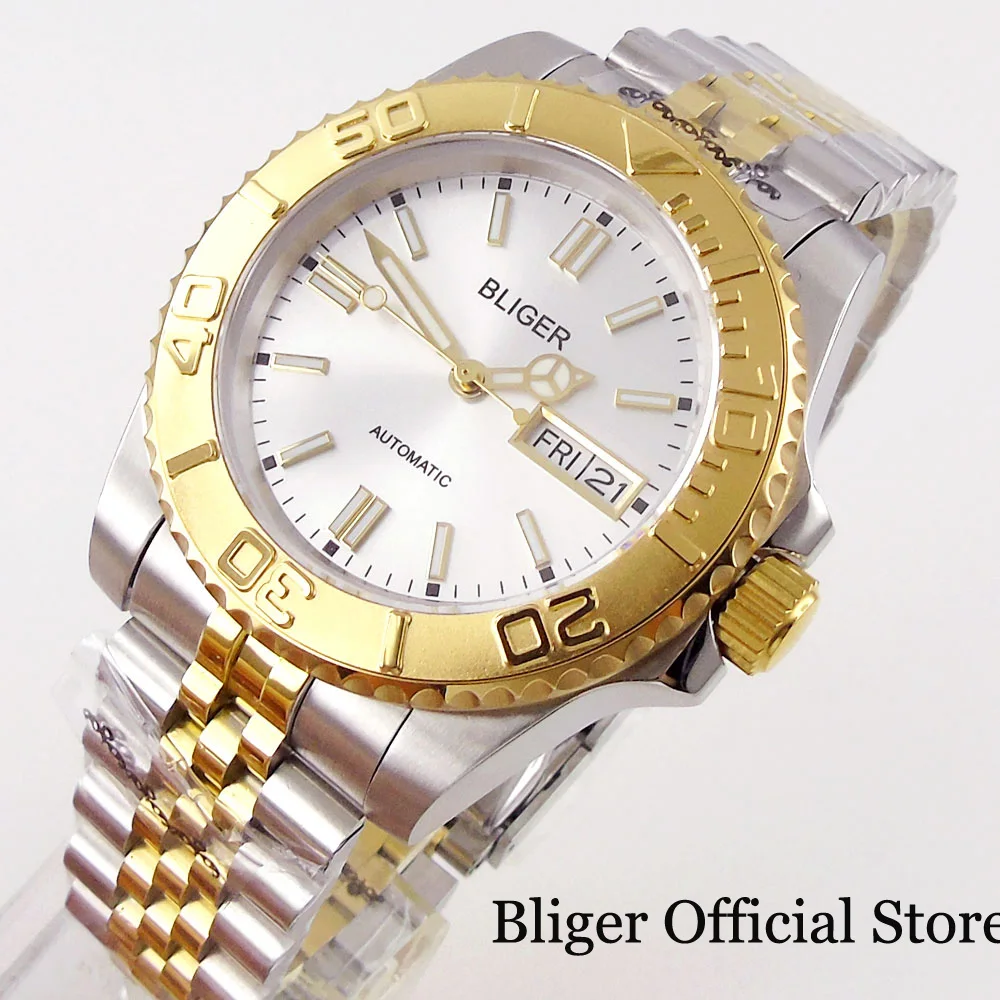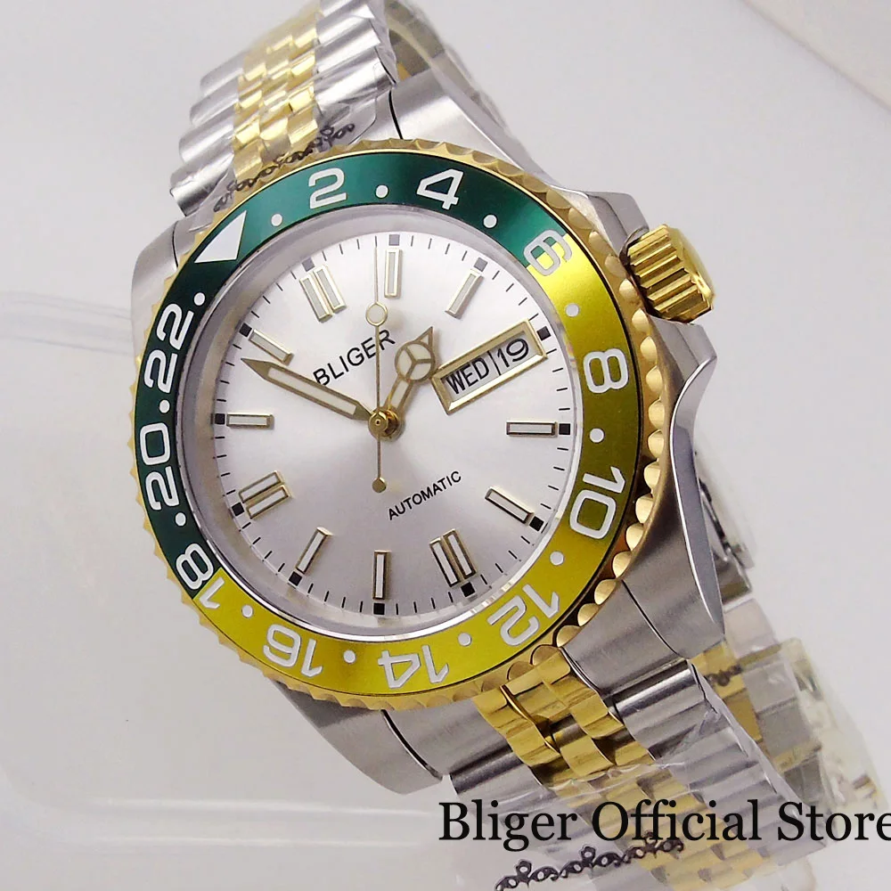 Новинка, мужские наручные часы BLIGER небесно-голубого цвета NH36A Move, мужские наручные часы с автоподзаводом, матовая серая вставка, устричная скользящая застежка, окно на выходные дни