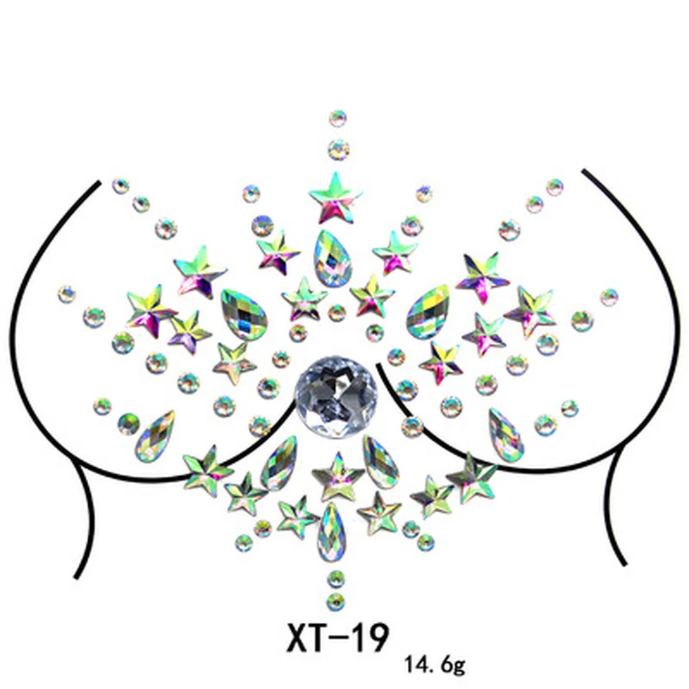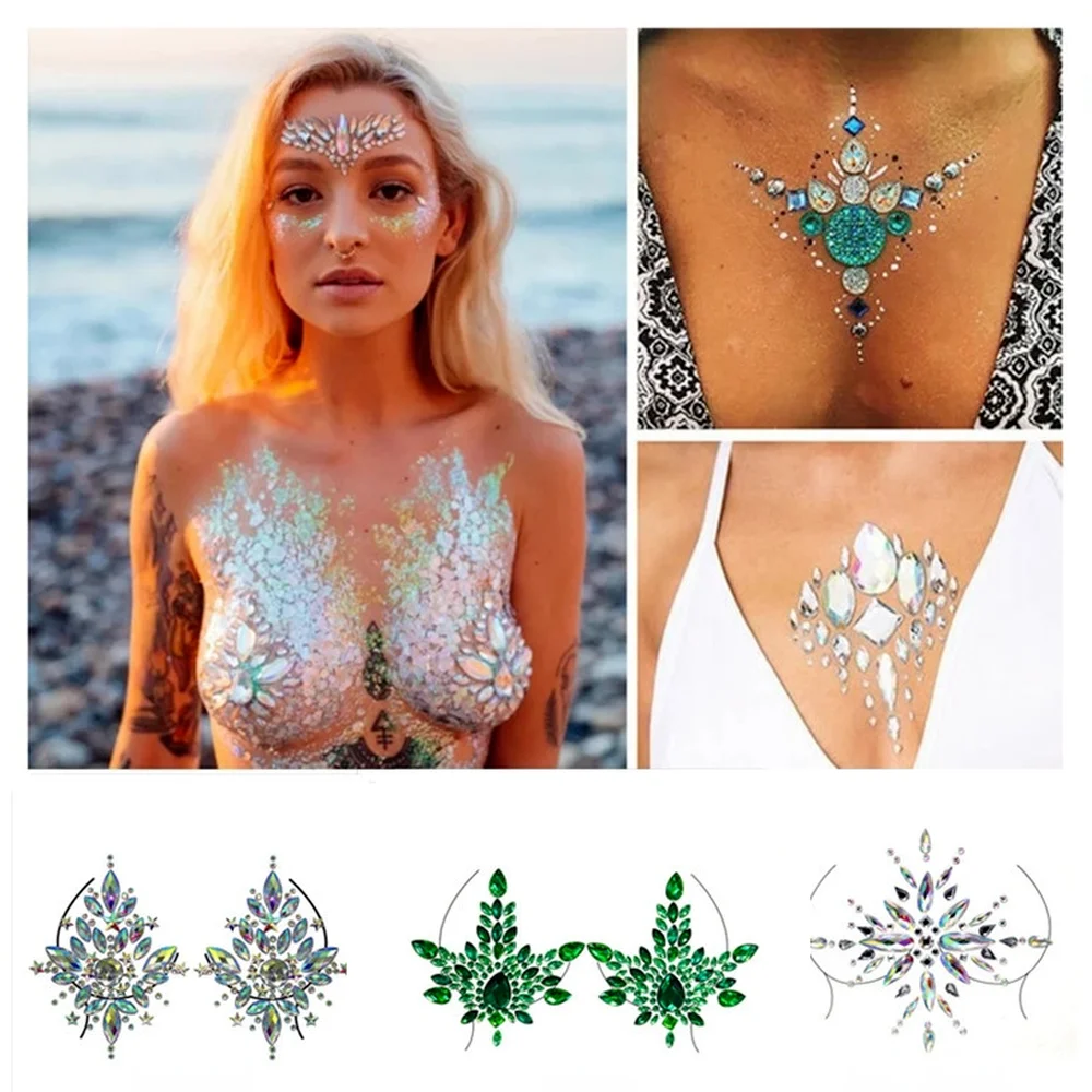 Временные женские наклейки-татуировки, драгоценности на грудь, кристаллы, бриллианты, акриловые стразы, наклейки для лица