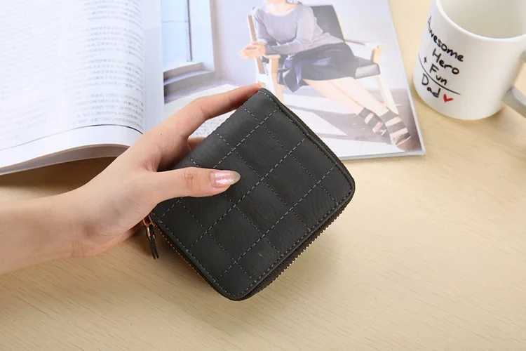 Женские короткие кошельки из искусственной кожи, Женские клетчатые кошельки, кошелек из нубука с держателем для карт, Модный женский маленький кошелек на молнии с Отделом для монет