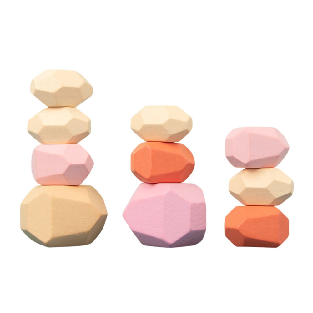 Обучающие деревянные цветные камни Монтессори, строительные блоки, игрушка, креативный скандинавский стиль, складываемая игра, радуга, строительные блоки, 1 комплект