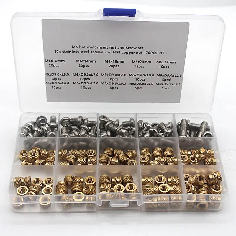 Набор винтов для вставки под горячее Расплавление, набор винтов для вставки под резьбу, латунь, термостойкий и устойчивый к ржавчине комбинированный набор