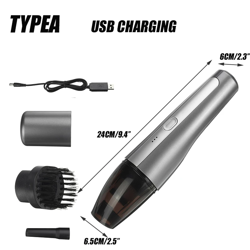 Упаковочный лист:Тип: беспроводной-1 х автомобильный пылесос-1 usb-кабель для зарядки-1 х короткая присоска-1 х длинная всасывающая головкаТип: проводной1 х Автомобильный Пылесос1 х Короткая присоска1 х длинная присоскаTypeC: сумка для храненияТип: Сменный фильтрХарактеристики:-Тип: беспроводной/проводной-Размер: 24х6, 5х6 см-Цвет: как на фото.-Материал: АБС-пластик + мотор-Напряжение: 12 В-Мощность: 200 Вт-Всасывание: 20000PA-Номинальная скорость: 26000 (об/мин)Особенности:-Он чистый, как только вы вдыхаете, независимо от типа. Легко справиться со всеми видами мусора, как сухой, так и влажной-Более Мощное всасывание, 20000 ПА большой двигатель. Лопасть вентилятора из алюминиевого сплава для увеличения всасывания-Большая емкость ячейки длится 30 минут-Быстрая зарядка литий-ионного аккумулятора высокой плотности-Управление басами, обновление шумоподавления-Гуманная ручка, лучше подходит для ладони-Usb-зарядная головка, более удобная.-Дисплей питания в режиме реального времени, показывающий оставшуюся мощность-Фильтр HEPA, дышащий и непроницаемый для пыли, можно стирать повторноПримечания:1. Из-за ручного измерения допускается погрешность в 1-3 см. Пожалуйста, убедитесь, что вы не возражаете перед покупкой.2. Цвет может отличаться, обратите внимание.