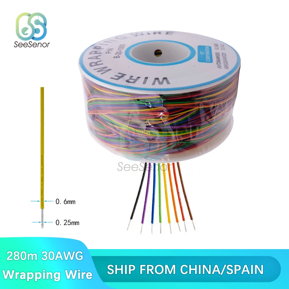 Один рулон 8 цветов 280 м 30AWG провод для обмотки проводов Луженая Медь твердый ПВХ изоляция гибкий силиконовый провод электронный кабель
