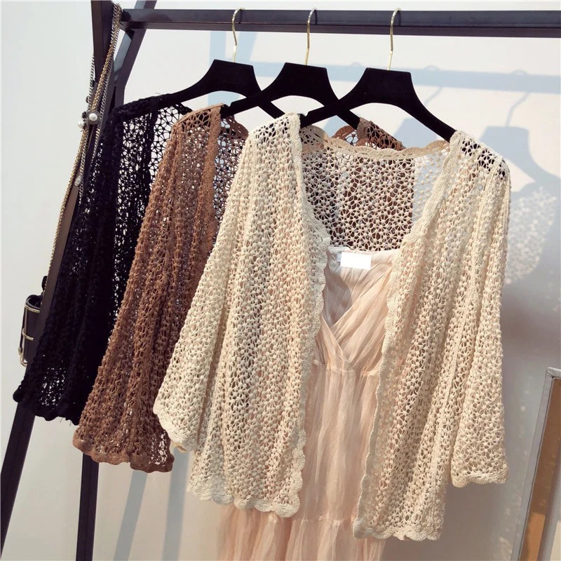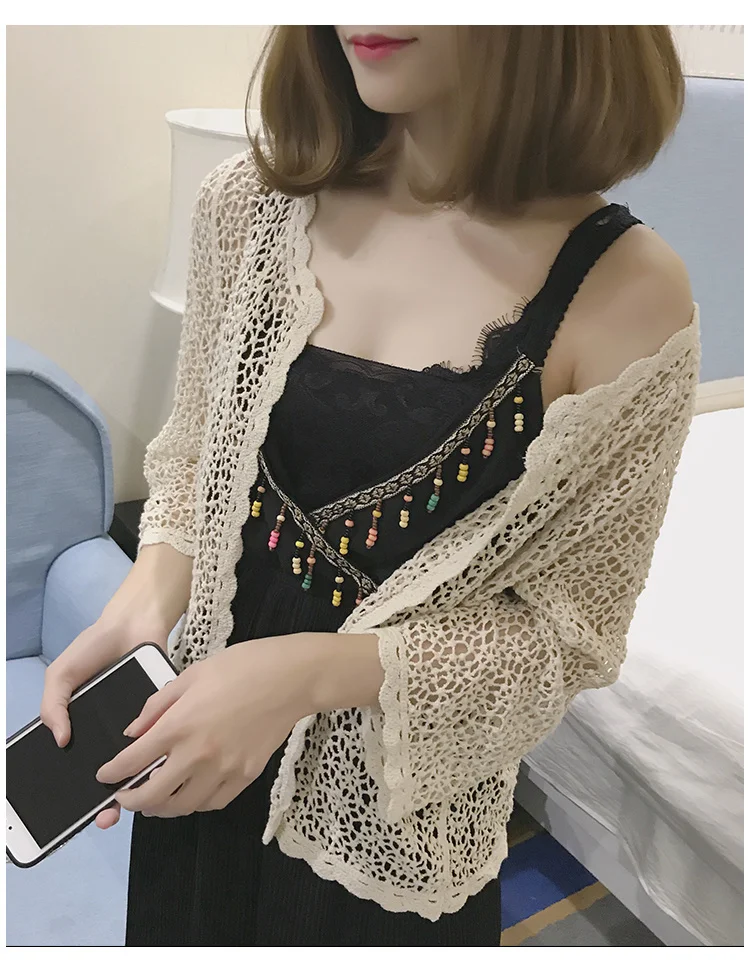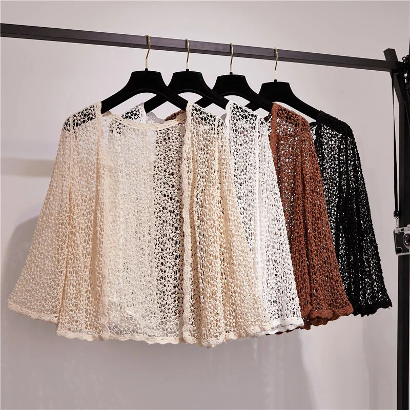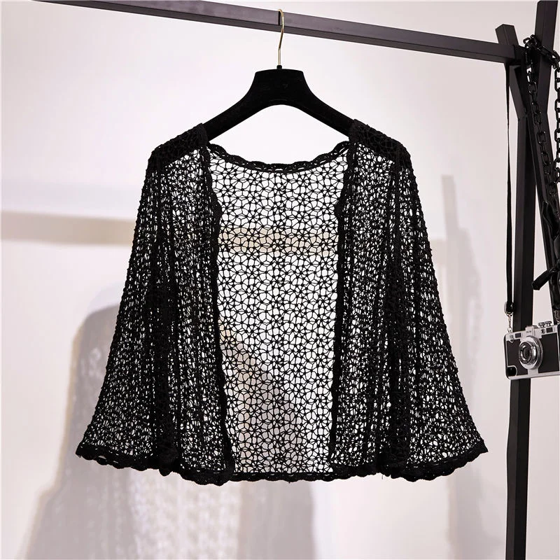 Женская вязаная блузка, короткий кардиган, летний вязаный кардиган