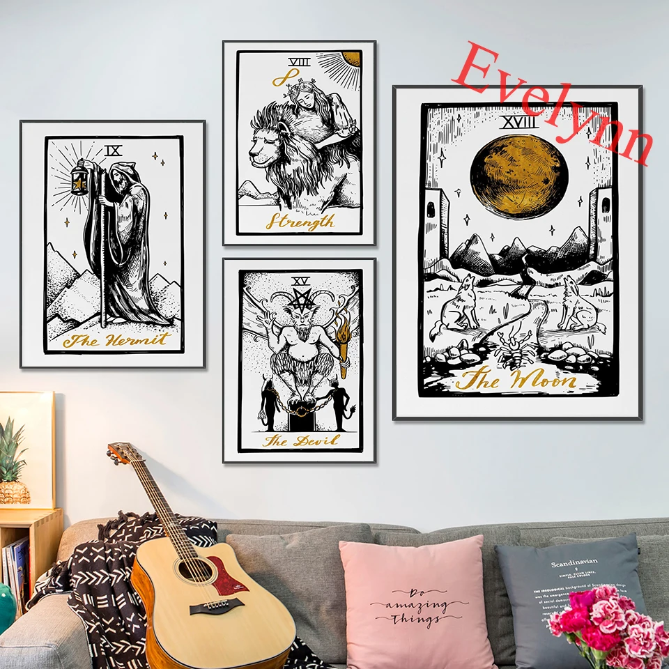 Постер Таро, звезда, Лев, богиня, магия, волшебство, скелет, богиня луны, император, император, домашний декор, холст, настенные художественные принты, уникальный подарок