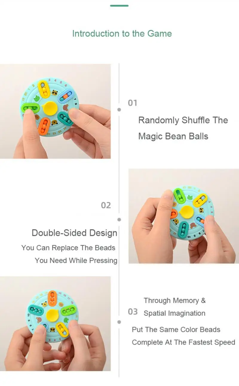 【Легко играть 】не могли бы вы положить один и тот же цвет бисера вместе? Тщательно спроектированные 4 о-образных вогнутых отверстия, каждый паз имеет ряд небольших бусин, которые могут перемещаться и вращаться, нажимая Средний модуль. Больше методов ждет вашего развития.
