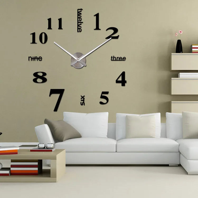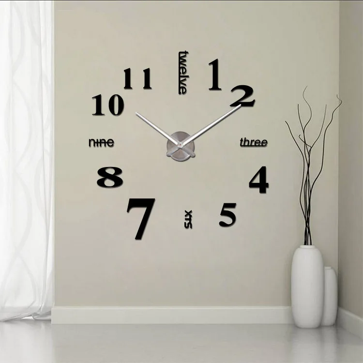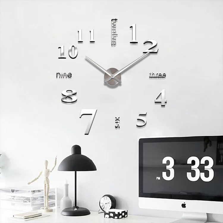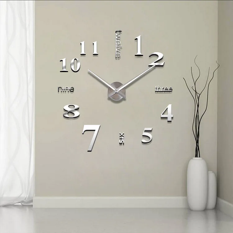 Большие настенные часы 3D сделай сам, бесшумные акриловые зеркальны...