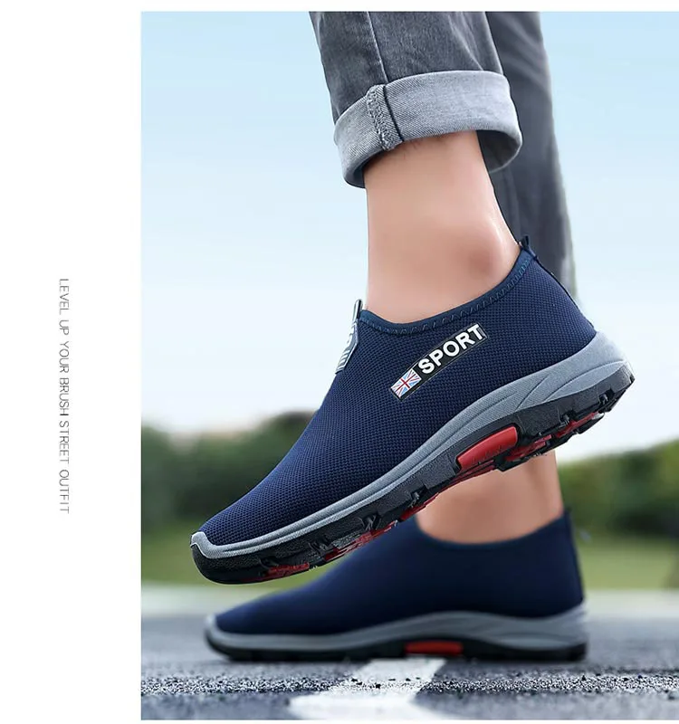 Кроссовки мужские сетчатые легкие, повседневная прогулочная обувь, дышащие лоферы, без застежки, летние