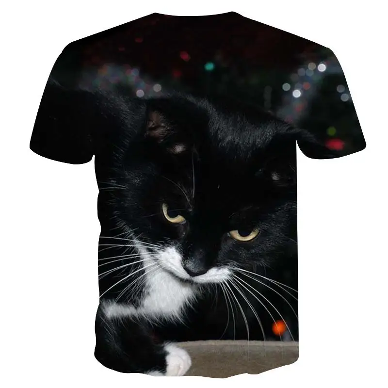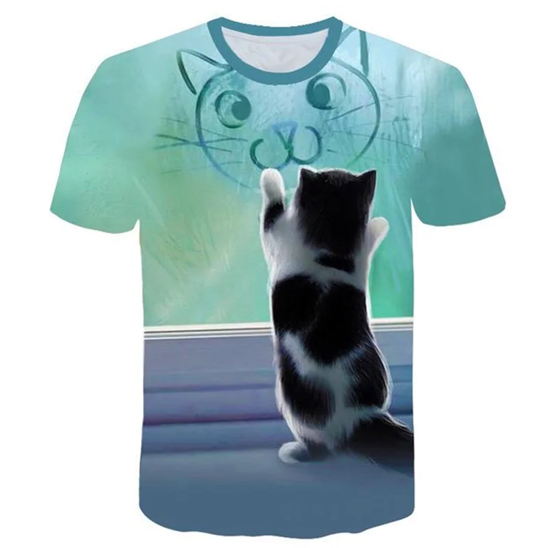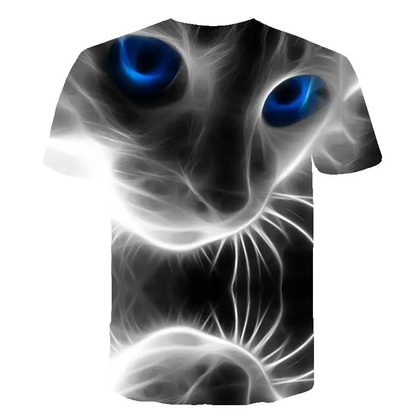 Футболка с 3D-принтом кошки для мужчин и женщин, модная рубашка с к...