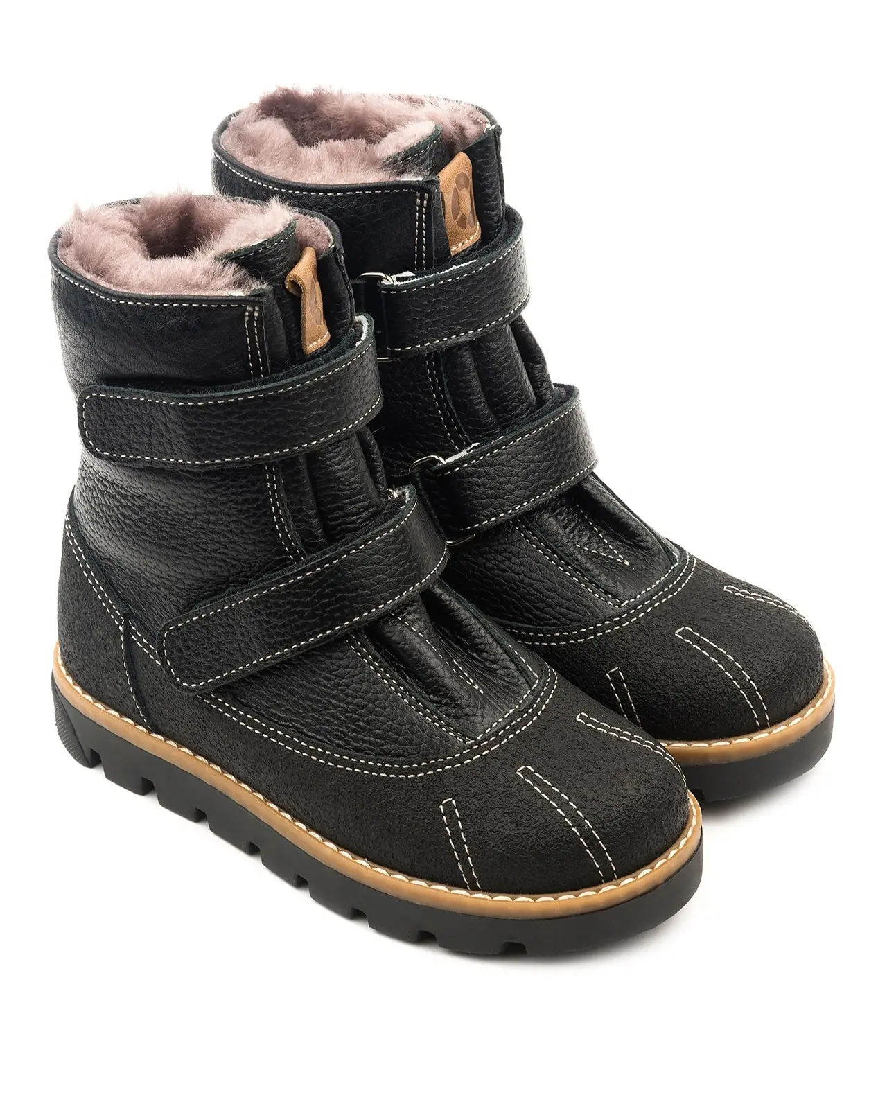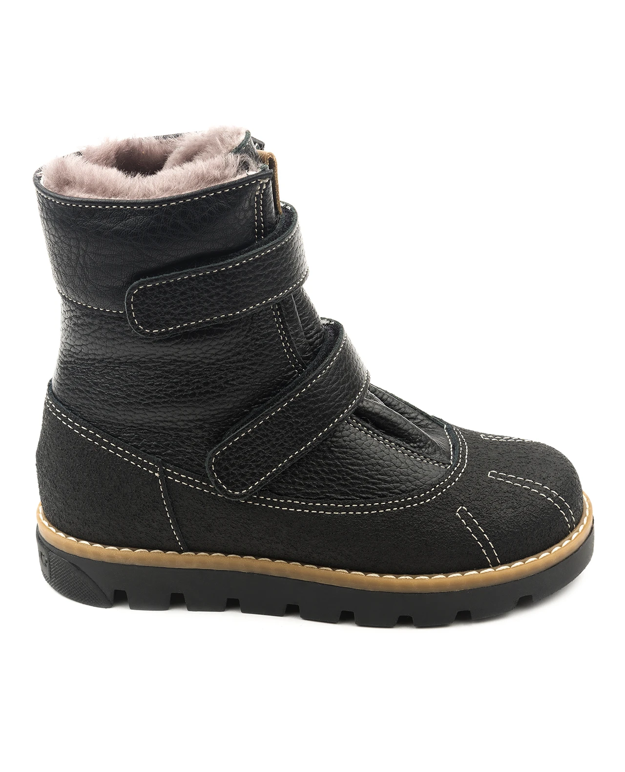 Ботинки утепленные натуральным мехом. Упругая анатомическая стелька для правильного формирования стопы. Жесткий фиксирующий задник с удлиненным крылом надежно стабилизирует голеностопный сустав во время ходьбы. Упругая, умеренно-эластичная подошва, имеющая перекат позволяющий повторить естественное движение стопы при ходьбе для правильного распределения нагрузки на опорно-двигательный аппарат ребенка. Подкладка из натурального меха поддерживает комфортную температуру внутри обуви при погодных условиях от -10 до -25 градусов.