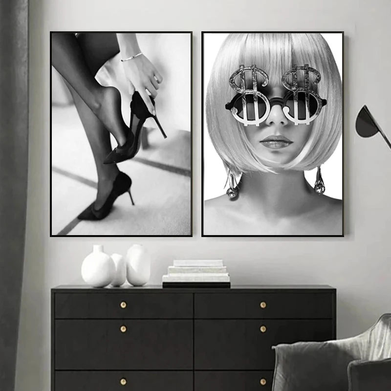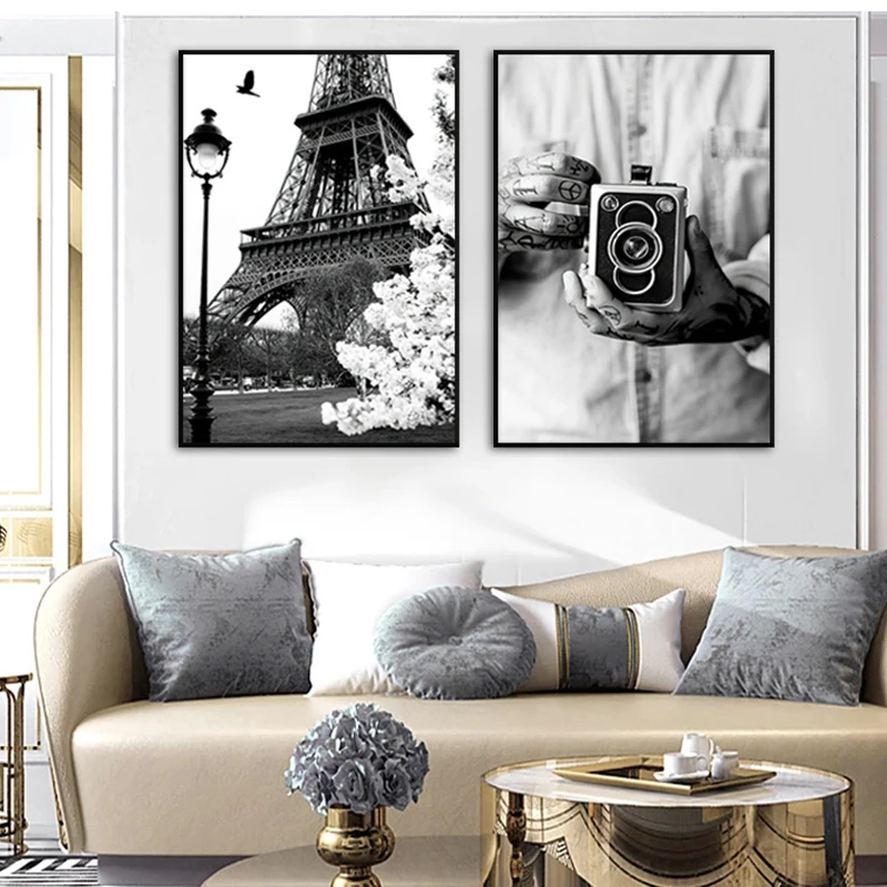 Модный черно-белый плакат для фотосъемки с Парижской башней и девушкой, Скандинавская Настенная картина на холсте, картины для украшения общежития