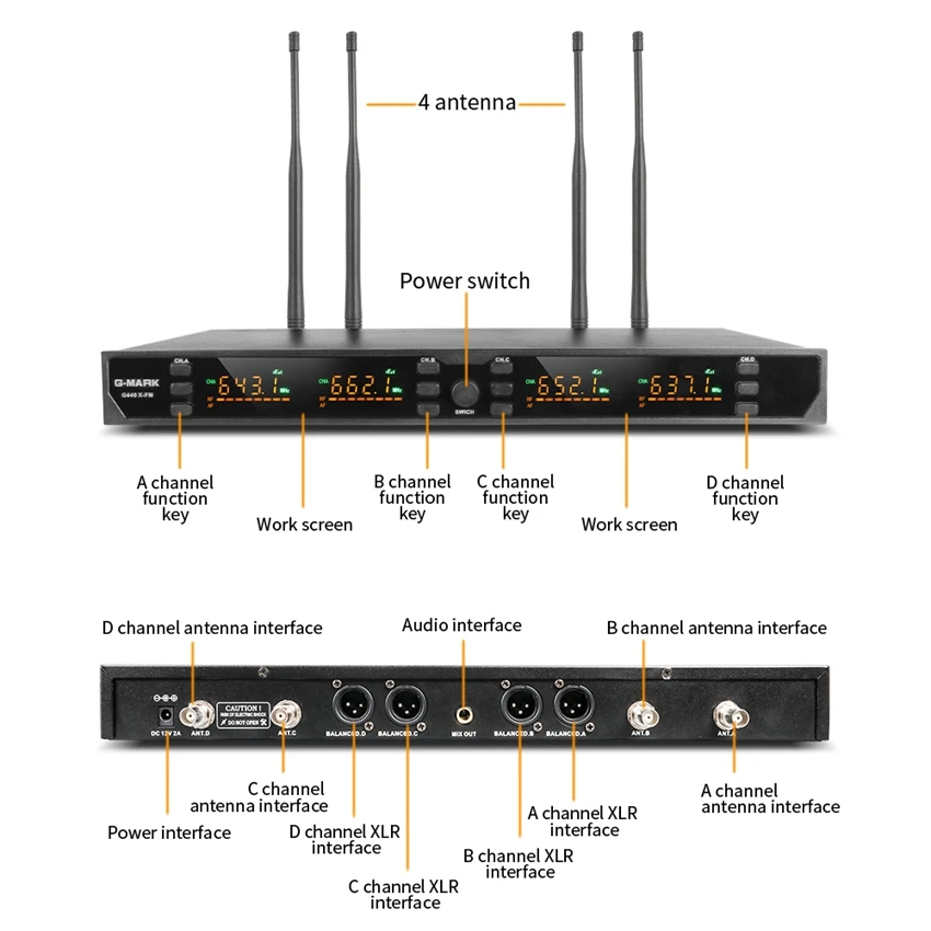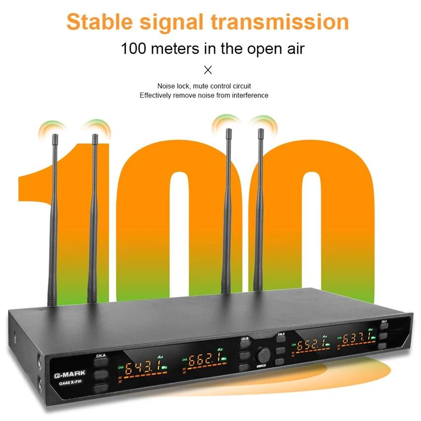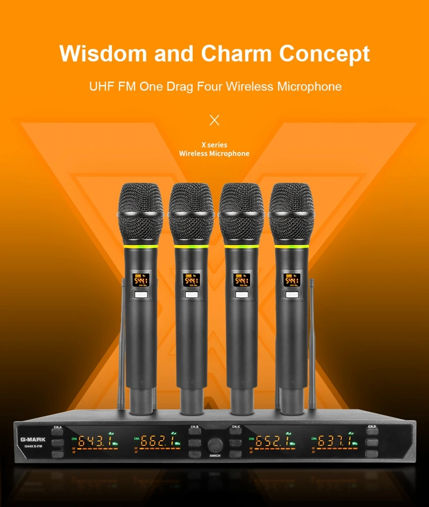 Стример для микрофона MK008F, 4 канала, Портативный динамический металлический корпус, выбор частоты для караоке