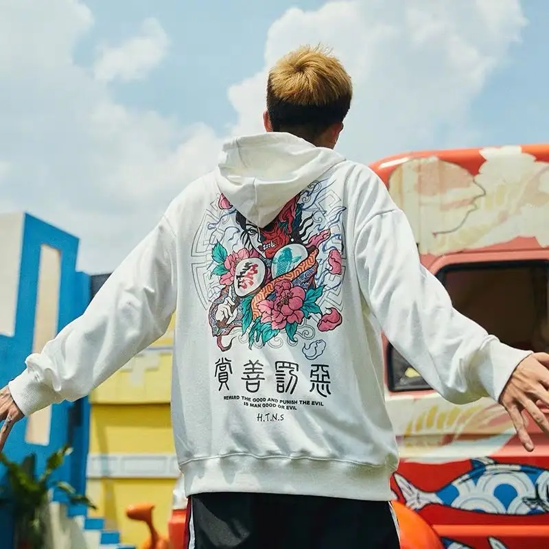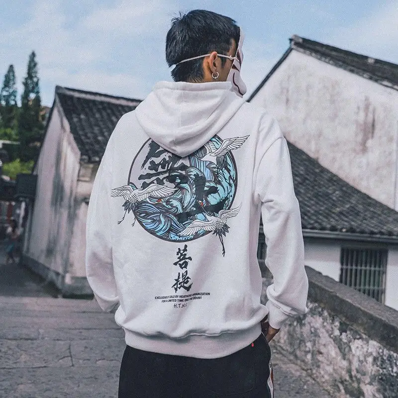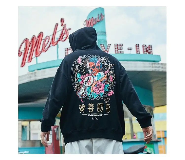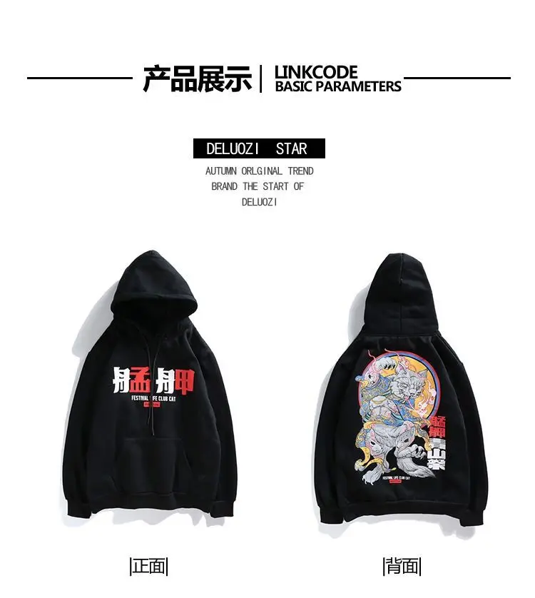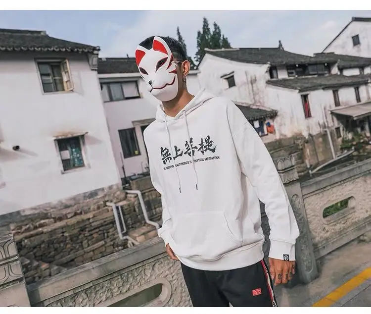 Черная китайская толстовка с капюшоном, свитшот, мужская повседневная забавная японская Готическая Толстовка в стиле хип-хоп, уличная одежда, топы, пальто, мужские зимние толстовки