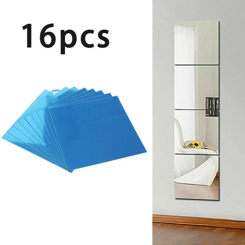 16 шт. 15 см Квадратные Зеркальные стеклянные наклейки на стену, наклейки, домашний декор, самоклеящиеся зеркальные наклейки премиум класса, водонепроницаемые наклейки для ванной комнаты