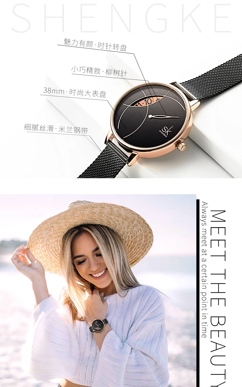 Часы женские кварцевые под розовое золото, с круглым циферблатом 38 мм