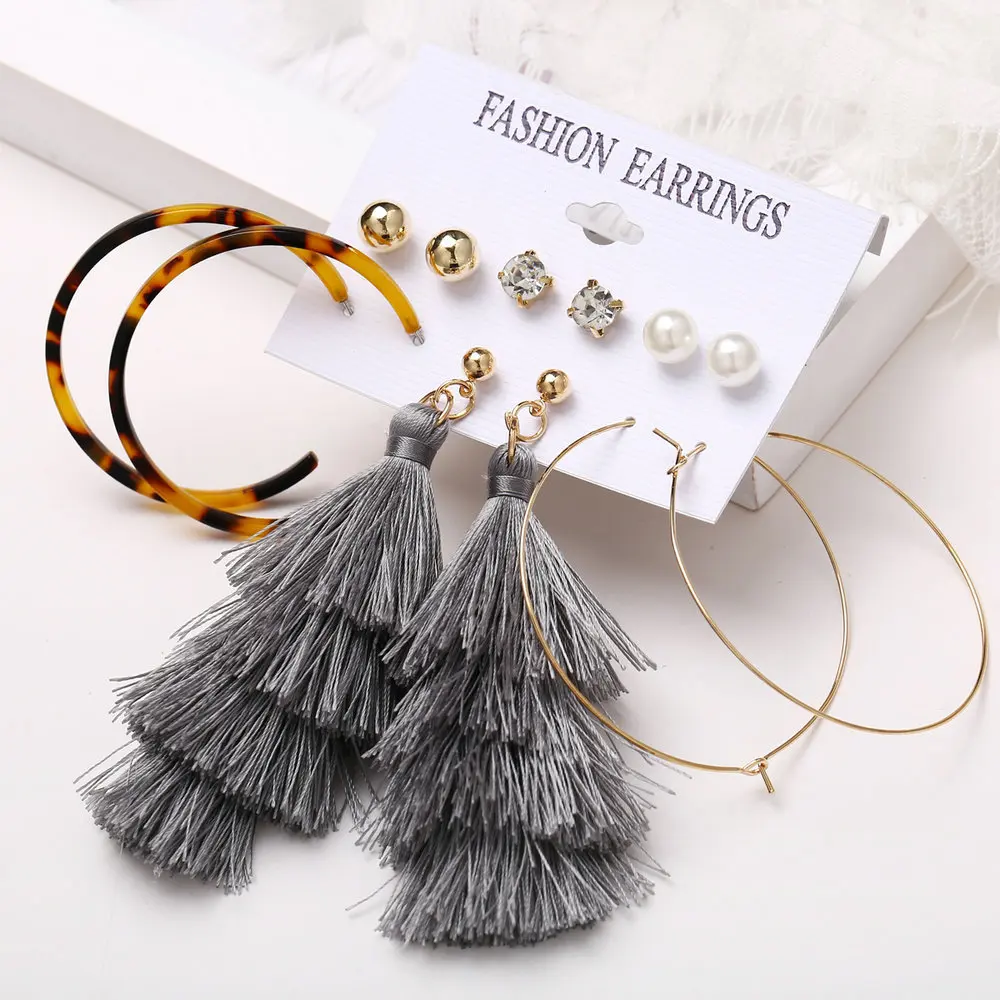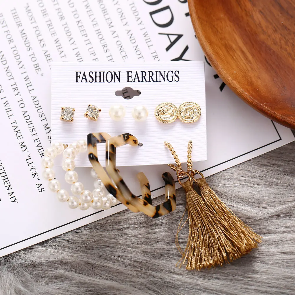 Женские акриловые серьги с кисточками и жемчугом