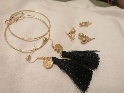 товар пришел не в полной комплектации, отсутствуют некоторые элементы, на одной паре серёжек отсутствует кисточка, на другая пара вообще не комплект должны быть 2 бусины золотистого цвета, а пришли 1 золотистого, а 1 под жемчуг. качество вообще плохое. Товар не соответствует описанию. Открывала спор вернули 0.08 цента. Смешно))