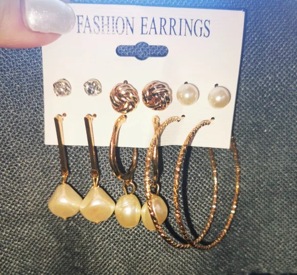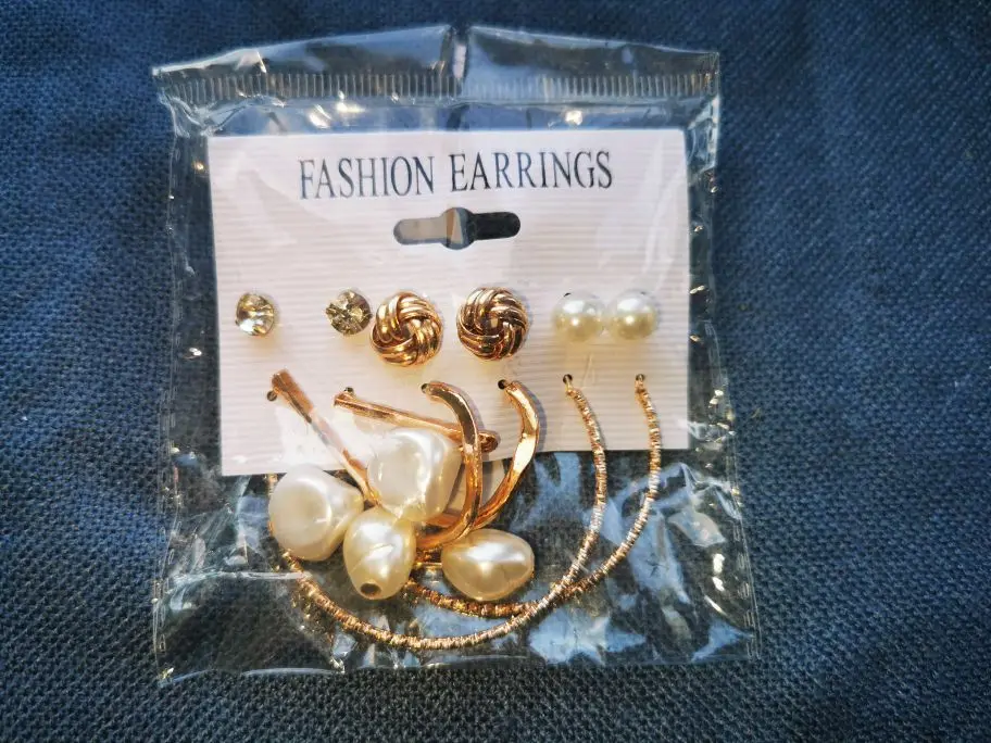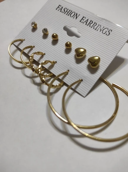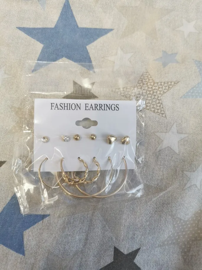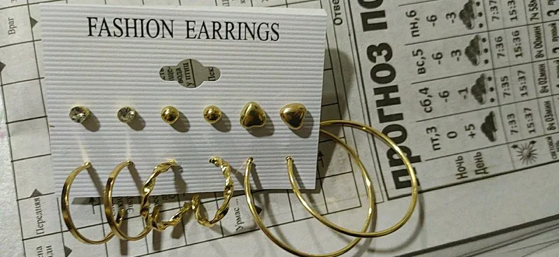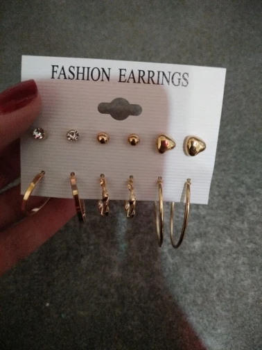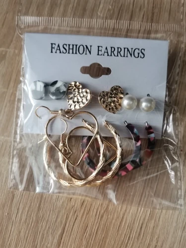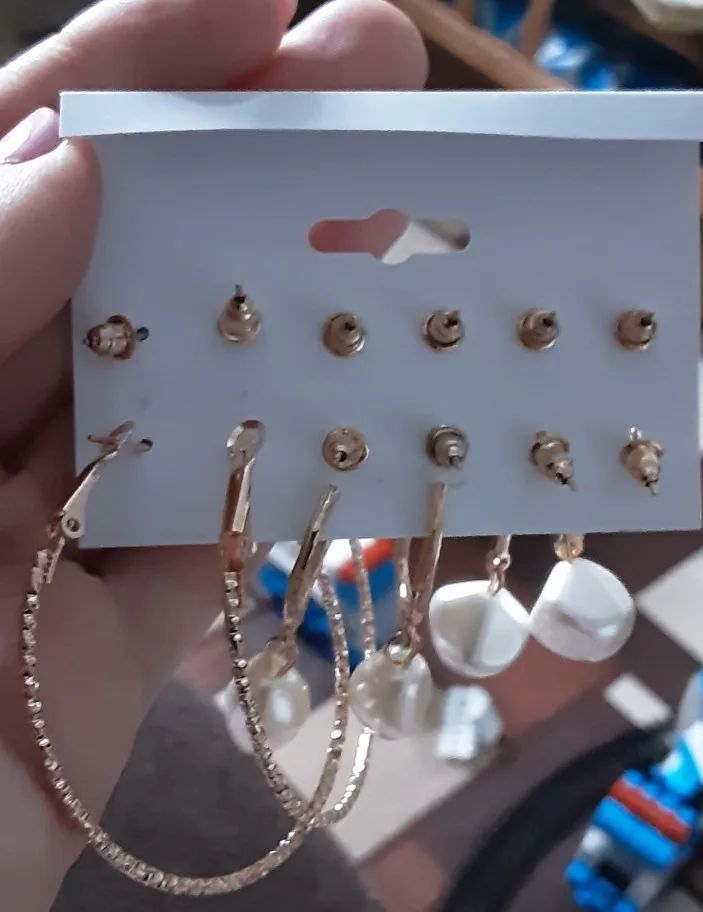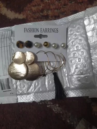 Заказ пришел в Киев за 33 дня Новой Почтой, объединенной посылкой. Трек отслеживался постоянно. В комплекте 6 пар серёжек - 3 пары гвоздиков и 3 пары более крупных серёжек. Красивые сережки, на все случаи жизни. В ушах сидят удобно, не тяжёлые. Заказом довольна