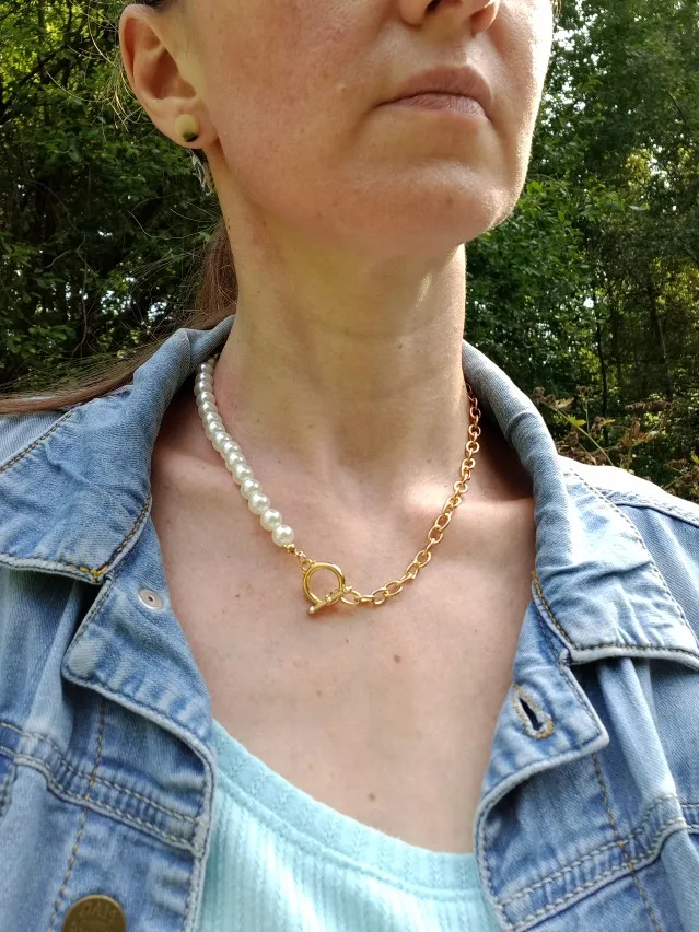 очень довольна, купила с большой скидкой и такой хороший набор! Специально выбирала универсальный, чтобы вычурных не было и можно было на каждый день носить. Единственное, что было неожиданным — даже крупные в нижнем ряду гвоздиками, а не застёжками. С застёжками только кольца. Жемчужинки — это хорошо сделанный пластик, спаек и швов нет.