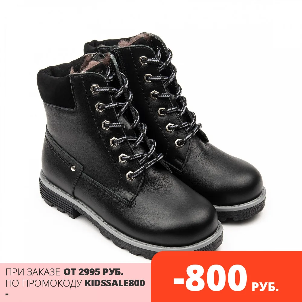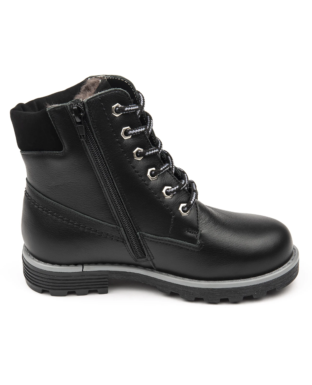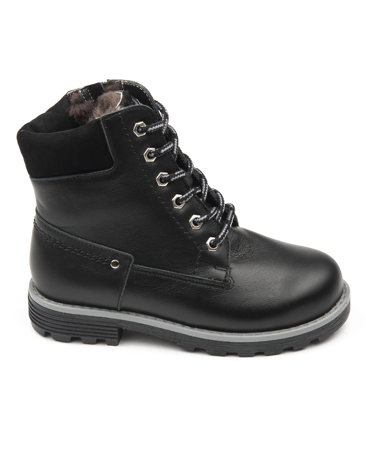 Актуальная классическая модель ботинок со шнурками для школьников, утепленная натуральным овечьим мехом. Упругая анатомическая стелька для правильного формирования стопы. Жесткий фиксирующий задник с удлиненным крылом надежно стабилизирует голеностопный сустав во время ходьбы. Упругая, умеренно-эластичная подошва с протектором, имеющая перекат, позволяющий повторить естественное движение стопы при ходьбе для правильного распределения нагрузки на опорно-двигательный аппарат ребенка. Подкладка из натурального меха поддерживает комфортную температуру внутри обуви при погодных условиях от 0 до -25 градусов. Комфортный увеличенный мягкий кант. Модель застегивается на молнию, что позволяет быстро и удобно надевать ботинки. Дизайн подойдет как девочкам, так и мальчикам.