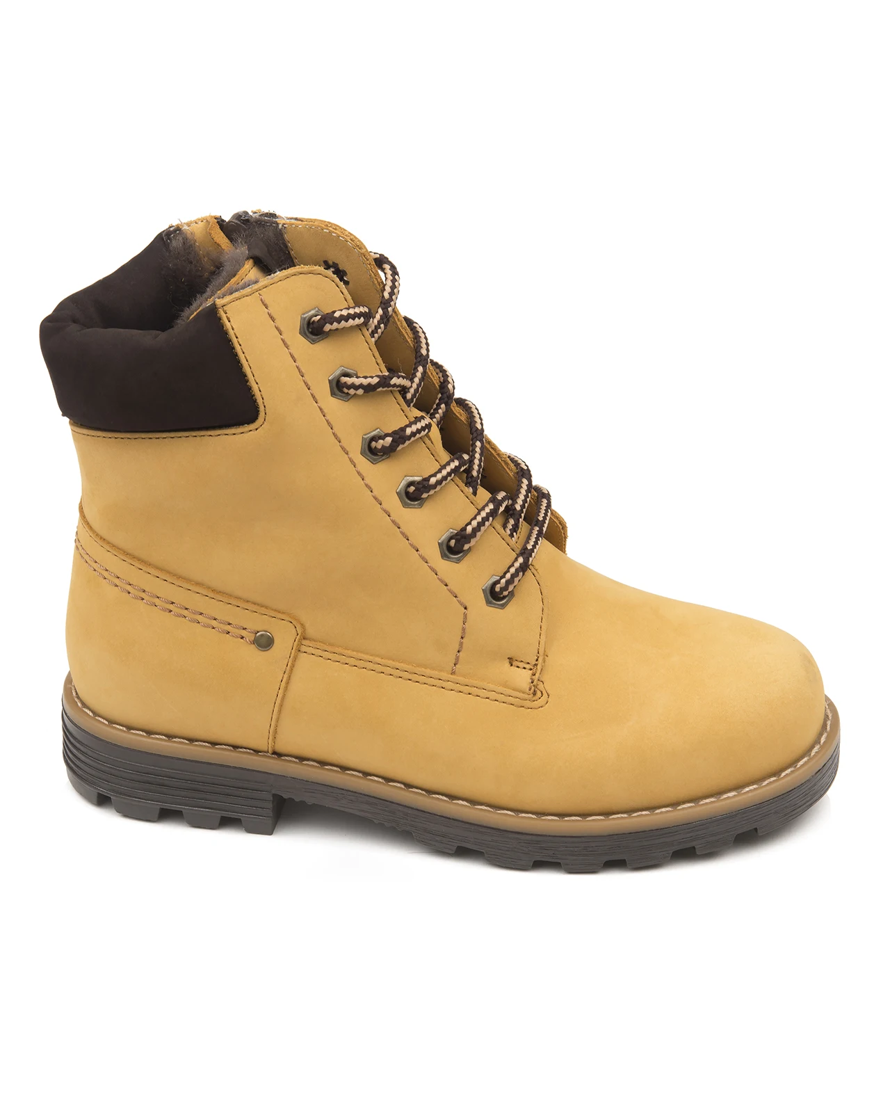 Актуальная классическая модель ботинок со шнурками для школьников, утепленная натуральным овечьим мехом. Упругая анатомическая стелька для правильного формирования стопы. Жесткий фиксирующий задник с удлиненным крылом надежно стабилизирует голеностопный сустав во время ходьбы. Упругая, умеренно-эластичная подошва с протектором, имеющая перекат, позволяющий повторить естественное движение стопы при ходьбе для правильного распределения нагрузки на опорно-двигательный аппарат ребенка. Подкладка из натурального меха поддерживает комфортную температуру внутри обуви при погодных условиях от 0 до -25 градусов. Комфортный увеличенный мягкий кант. Модель застегивается на молнию, что позволяет быстро и удобно надевать ботинки. Дизайн подойдет как девочкам, так и мальчикам.