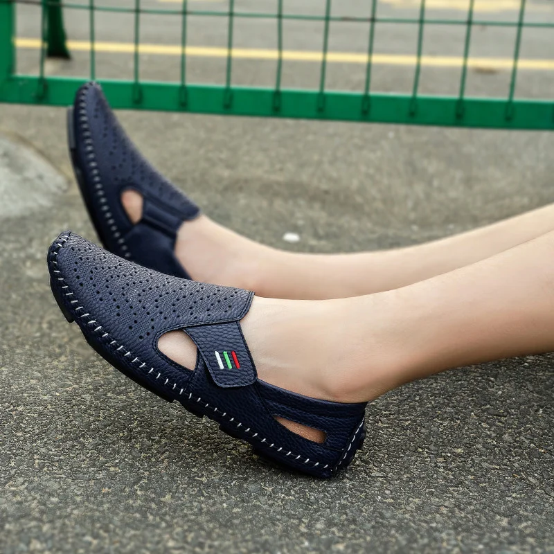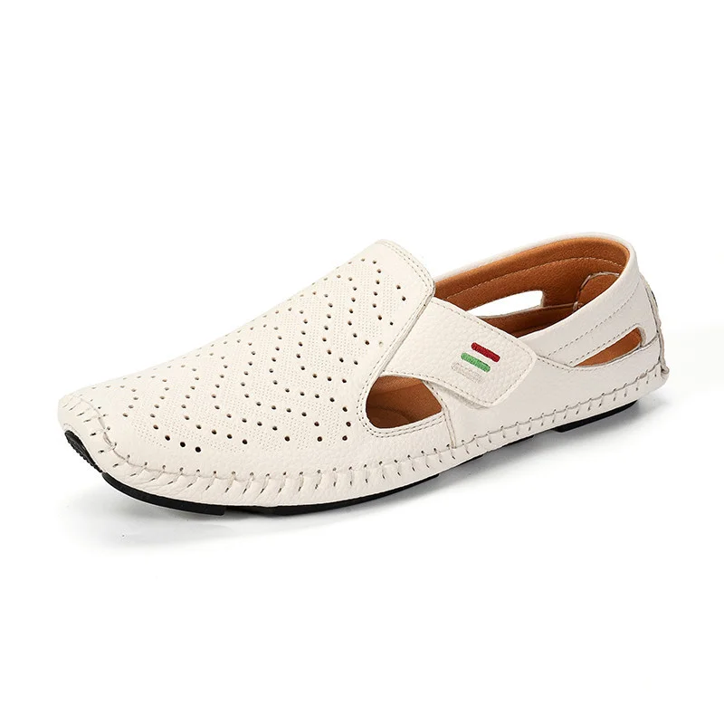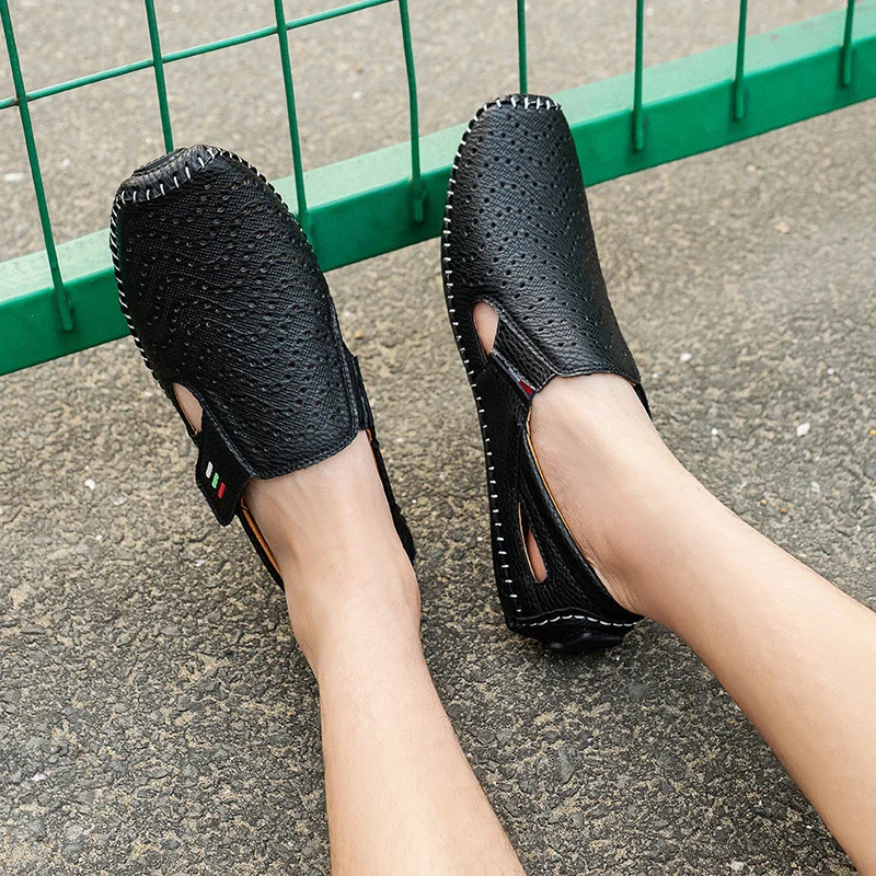 Туфли мужские летние из натуральной кожи, дышащие лоферы, без засте...