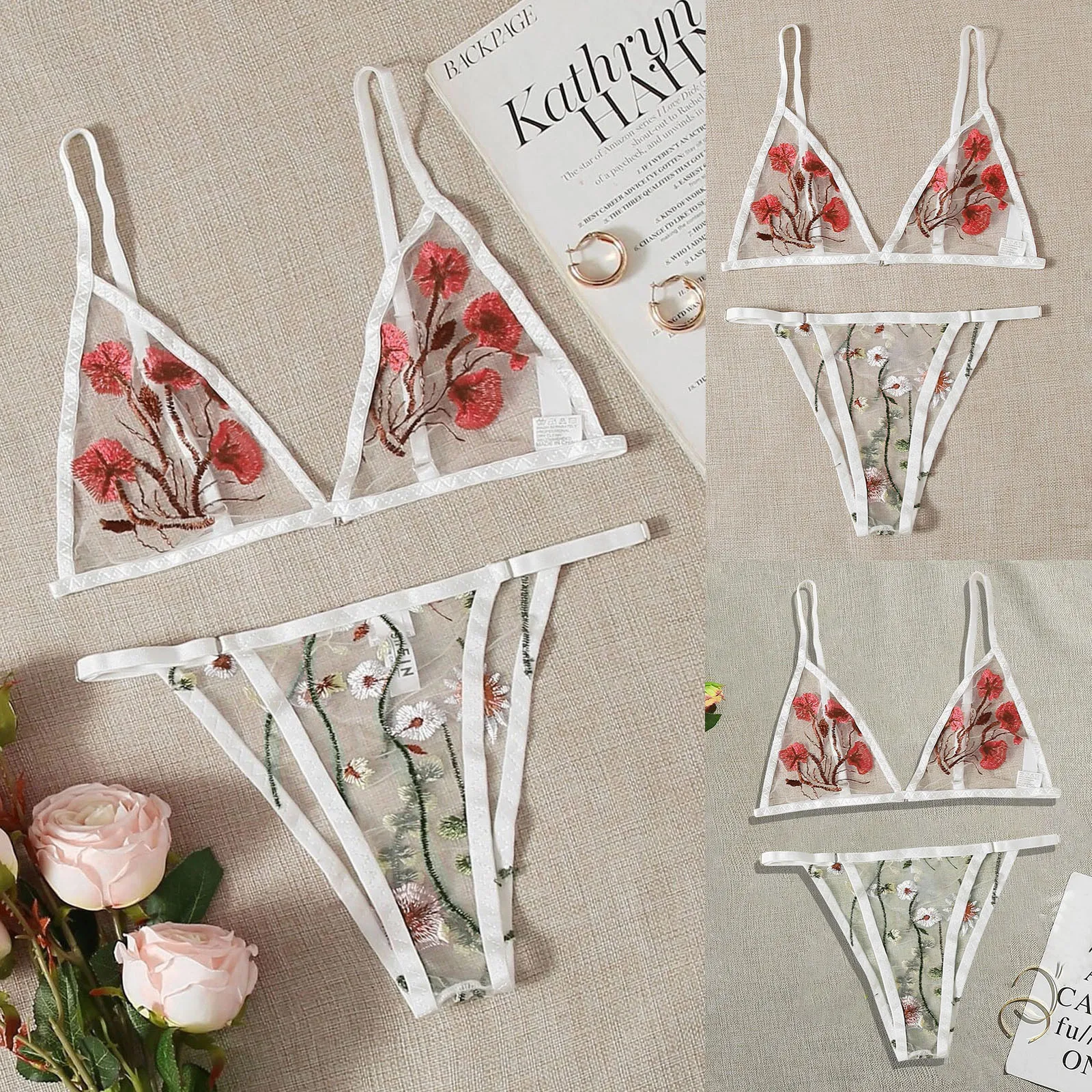 Прозрачный сексуальный бюстгальтер с цветочной вышивкой, сетчатый сексуальный бюстгальтер, трусики, комплекты женского нижнего белья, чувственное белье, женское эротическое белье