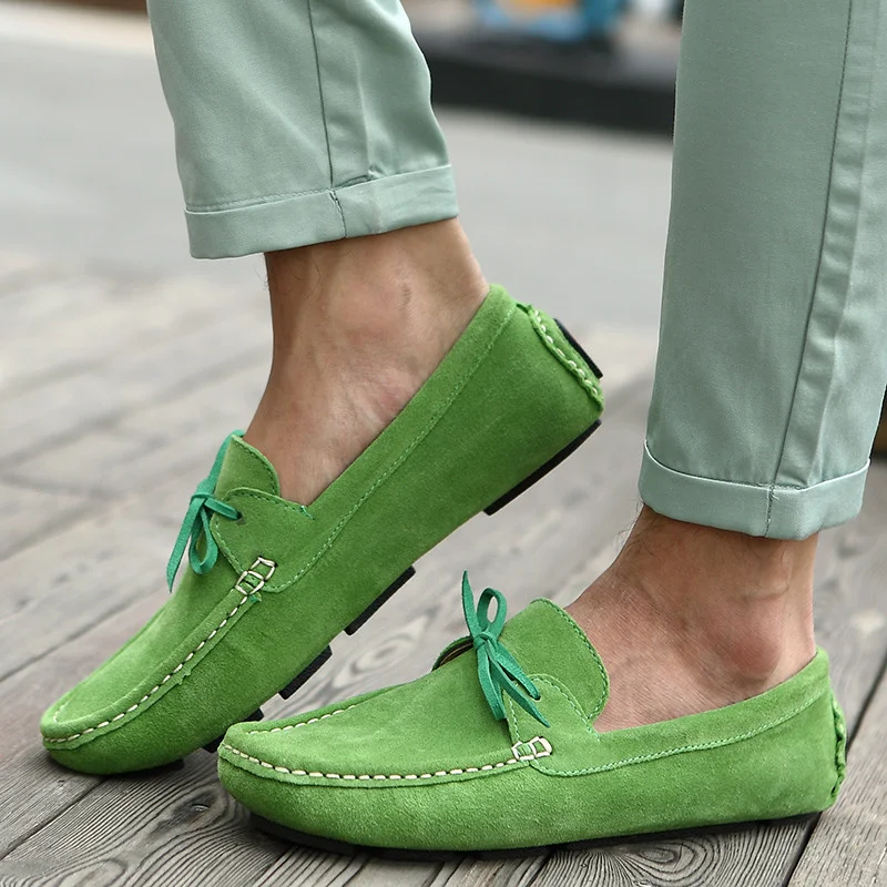 Мужские дизайнерские туфли на шнуровке, роскошные брендовые итальянские туфли для вождения, повседневные зеленые мокасины из замши и кожи