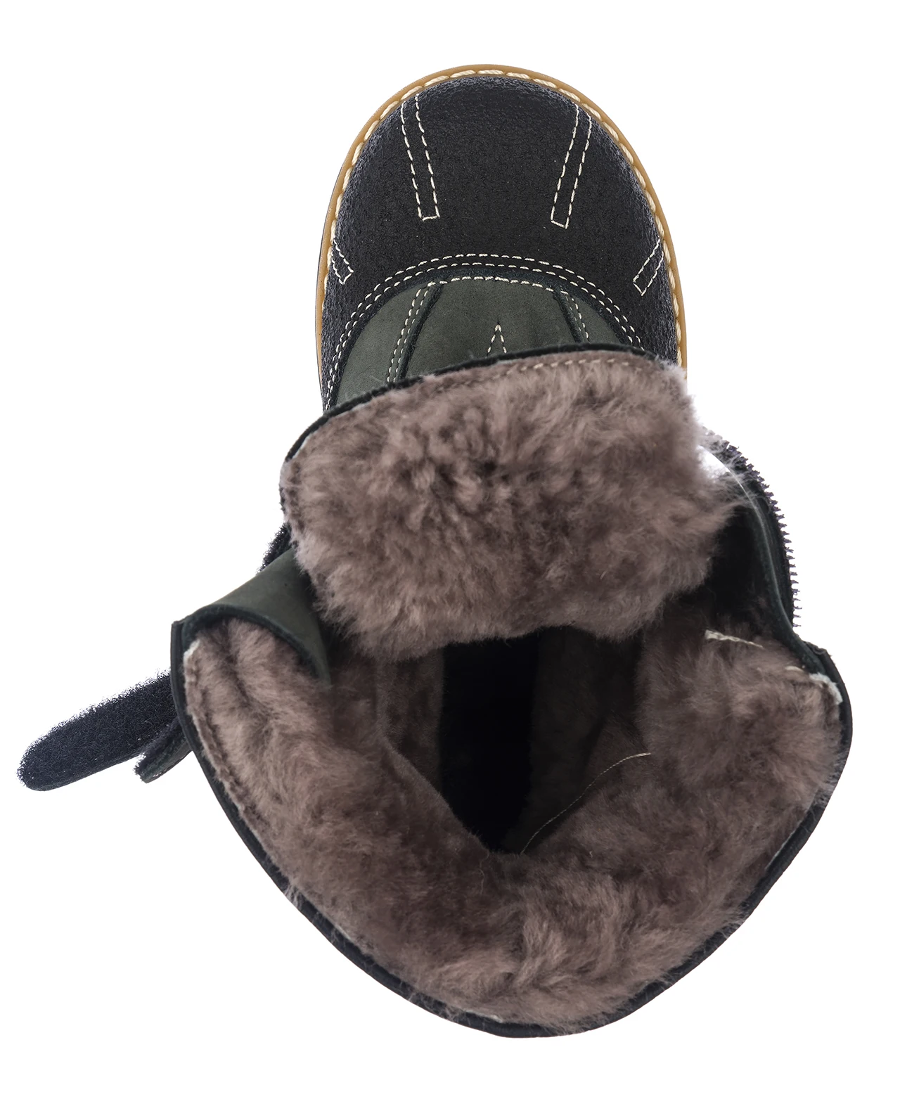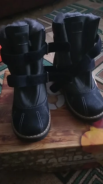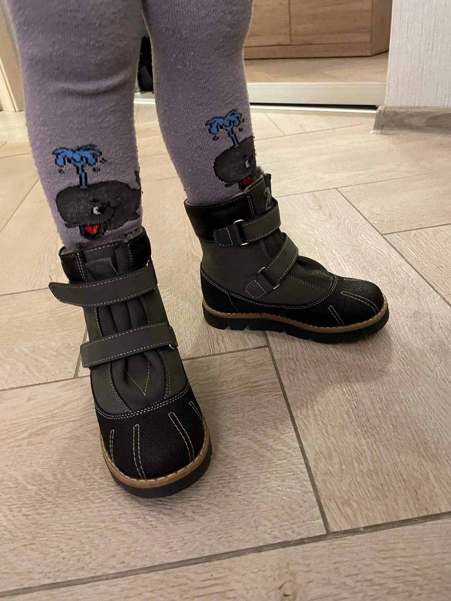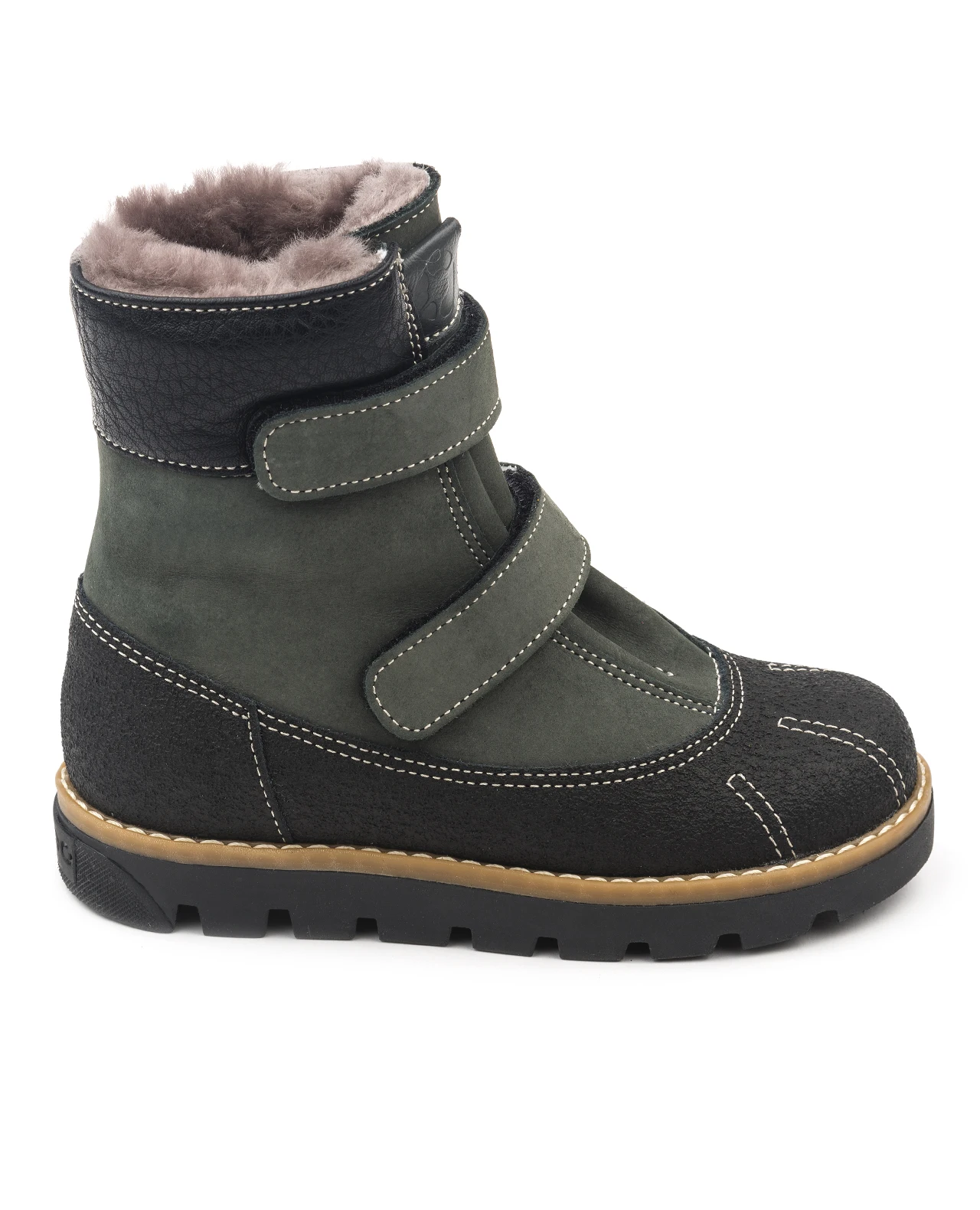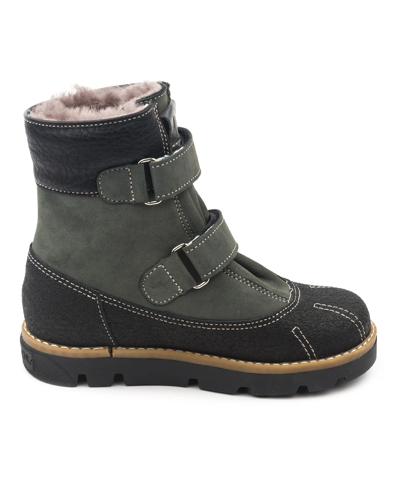 Ботинки утепленные натуральным мехом. Упругая анатомическая стелька для правильного формирования стопы. Жесткий фиксирующий задник с удлиненным крылом надежно стабилизирует голеностопный сустав во время ходьбы. Упругая, умеренно-эластичная подошва, имеющая перекат позволяющий повторить естественное движение стопы при ходьбе для правильного распределения нагрузки на опорно-двигательный аппарат ребенка. Подкладка из натурального меха поддерживает комфортную температуру внутри обуви при погодных условиях от -10 до -25 градусов.