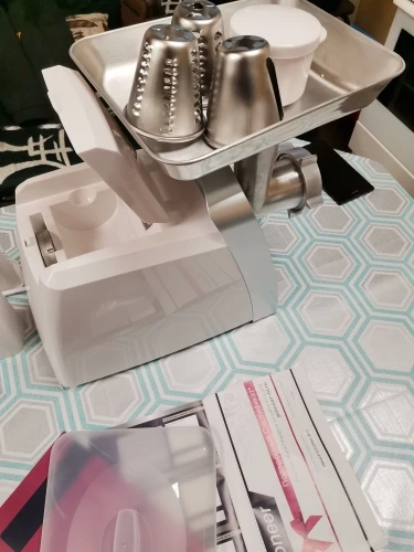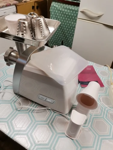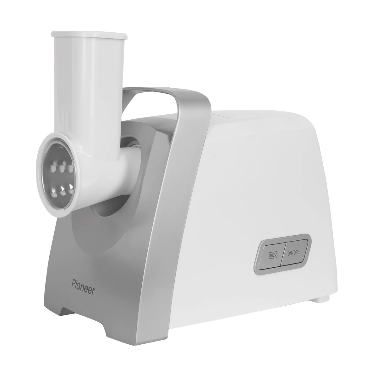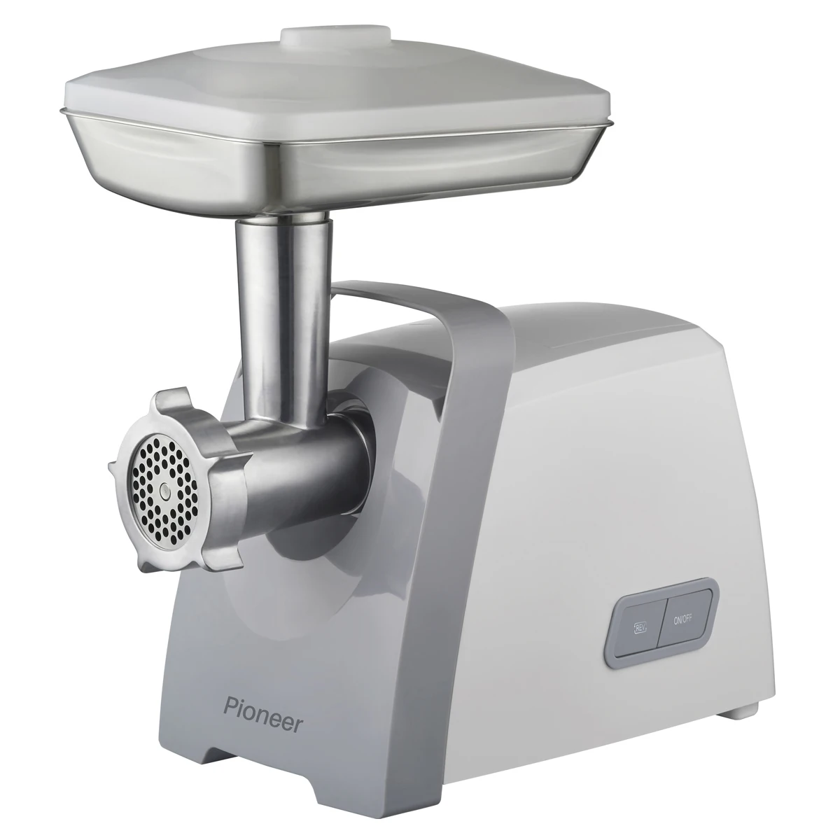 Электрический точильщик mg120 бренд pioneer с светодиодный кнопками с подсветкой-это стильный, практичный и функциональный помощник на вашей кухне, который облегчит ручную работу хозяйки.Мы тщательно следим за производством каждой части и сборкой готового продукта, поэтому мы можем честно сказать, что наша Мясорубка является надежной и высококачественной. Из фарша вы можете подготовить много вкусных и полезных блюд, а фарш, сделанный своими руками, безусловно, предпочтителен для фарша из магазина. При приготовлении пищи вы можете регулировать качество, состав и консистенцию фарша: сделать его более толстым на пельменях, смешать несколько видов мяса на пельменях.Наша электрическая мясорубка быстро справится с этой задачей. Модель имеет высокую производительность 2 кг/минуту и мощность 2000 Вт. В комплекте 3 стержня с диаметром отверстий 3 мм, 5 мм и 7 мм, литой нож изготовлен из нержавеющей стали. Для хранения решетки и ножа есть специальное отделение.Сопло для сосисок поможет сделать их ровными и красивыми, подходящими как для повседневного ужина, так и для праздничного стола. С помощью сопла Kebbe вы можете легко подготовить это Популярное блюдо из кухни Ближнего Востока. Части сопла можно компактно хранить в толкателе.Приятным дополнением являются насадки-овощерезки. Они являются конусовидной теркой с 3 типами нарезки. Благодаря им вы можете быстро выжать капусту, натереть морковь и другие овощи для супов или салатов.Чехол, изготовленный из высококачественного АБС-пластика, частично поглощает звук, производимый двигателем, и прорезиненные ножки гасят вибрацию, так что Мясорубка не шумит. Для удобства ношения на чехол есть ручка.Мясорубка оснащена очень важной обратной функцией (обратная прокрутка), поэтому при работе с твердым или вялым мясом вам не придется удалять мясо. Есть защита двигателя от перегрузки и защита от перегрева.Модель оснащена алюминиевым лотком для мяса и прозрачной крышкой, удобным пластиковым толкателем, а также оснащена механическим замком блока мясорубки.Шнур удобно хранить в отсеке, который расположен на дне мясорубки.Сборка корпуса (Д x Ш x В): 30 х18,3 х33,5 смРучка-14,5x3,2 смДлина шнура 136 смПосылка: мясорубка, пластиковый лоток, прозрачная крышка, 3 решетки, насадки для колбас и кеббе (входят в толкатель), камера является овощемУпаковочный листМясорубка, пластиковый поднос, прозрачная крышка, 3 решетки, насадки для колбас и кеббе (входят в толкатель), камера овощерезка