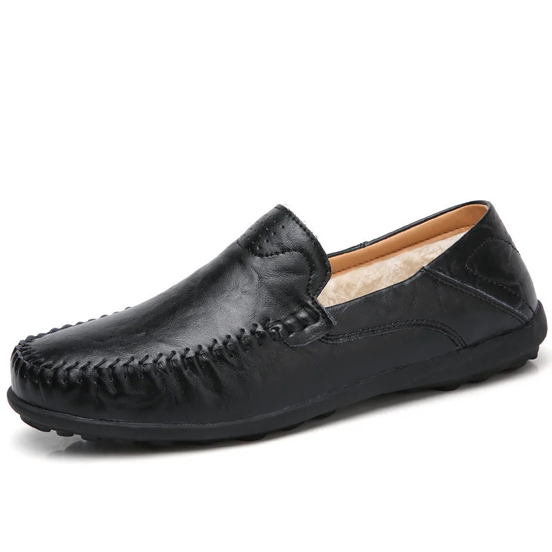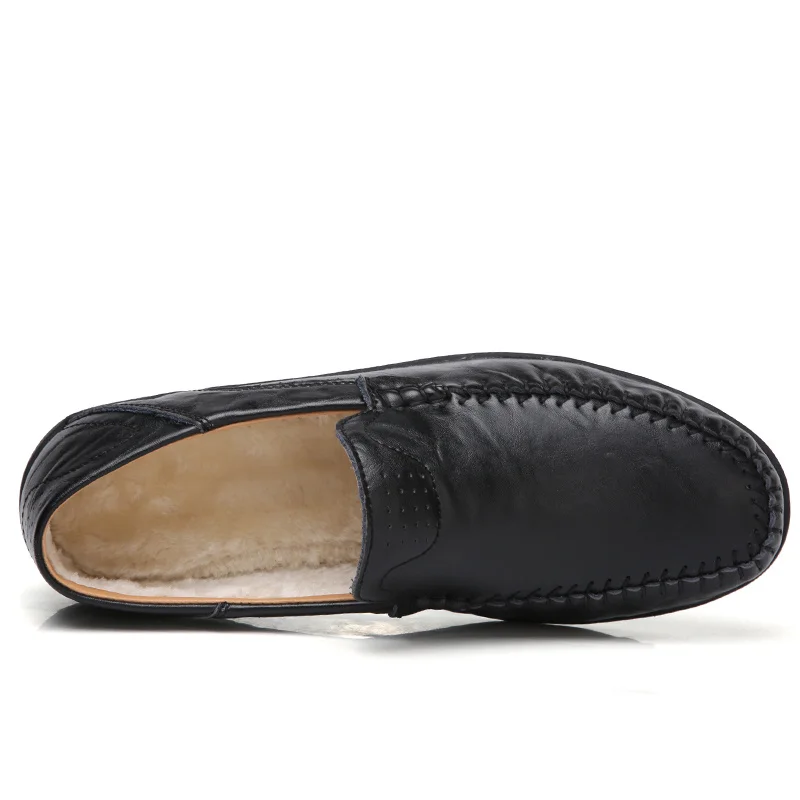 Зимние теплые мужские лоферы из натуральной кожи, обувь для вождени...