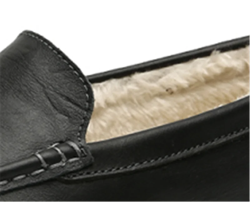 Мокасины мужские из натуральной кожи, зимняя теплая Повседневная об...