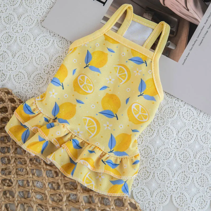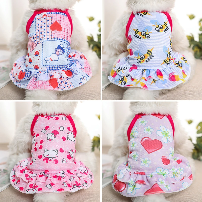 Одежда для собак из полиэстера, платье с фруктовым узором для девочек, футболки, костюм для влюбленных, жилет для маленьких кошек, юбки для домашних животных, одежда для собак