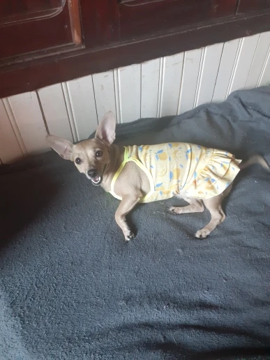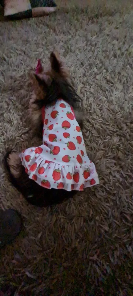 Доволен летним платьем для моей собаки. Я купил размер XXL и идеальный сыр. Ткань свежая.