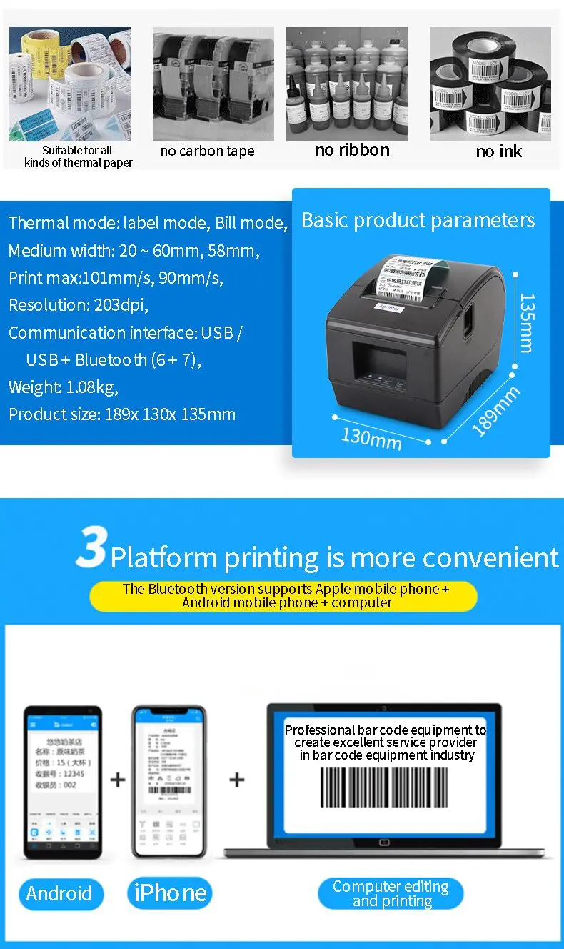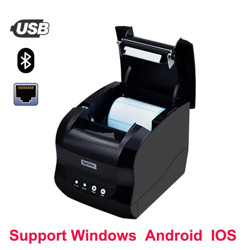 Принтер для печати этикеток Xprinter 80 мм, принтер для печати этикеток 20-80 мм со штрих-кодом, Bluetooth принтер 365B 370B 330B LAN Bluetooth USB