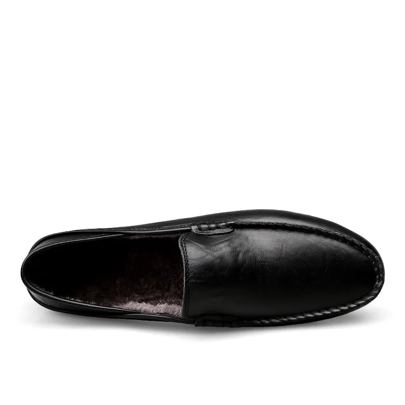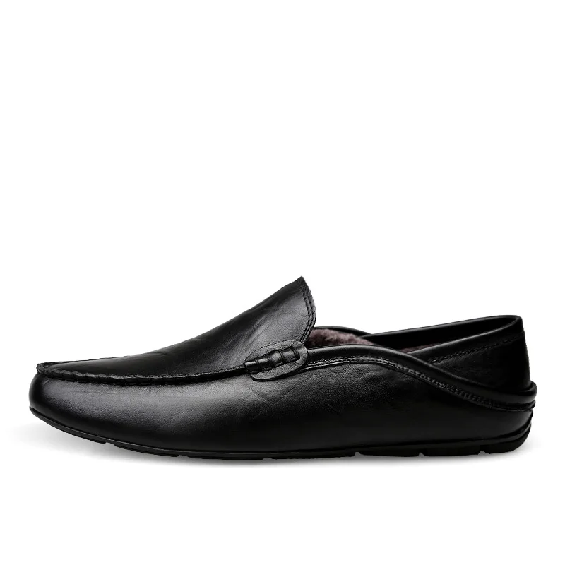 Лоферы мужские из натуральной кожи, зимние теплые меховые, ручной работы, повседневные, Роскошные, однотонные, дышащие, без застежки, итальянский стиль