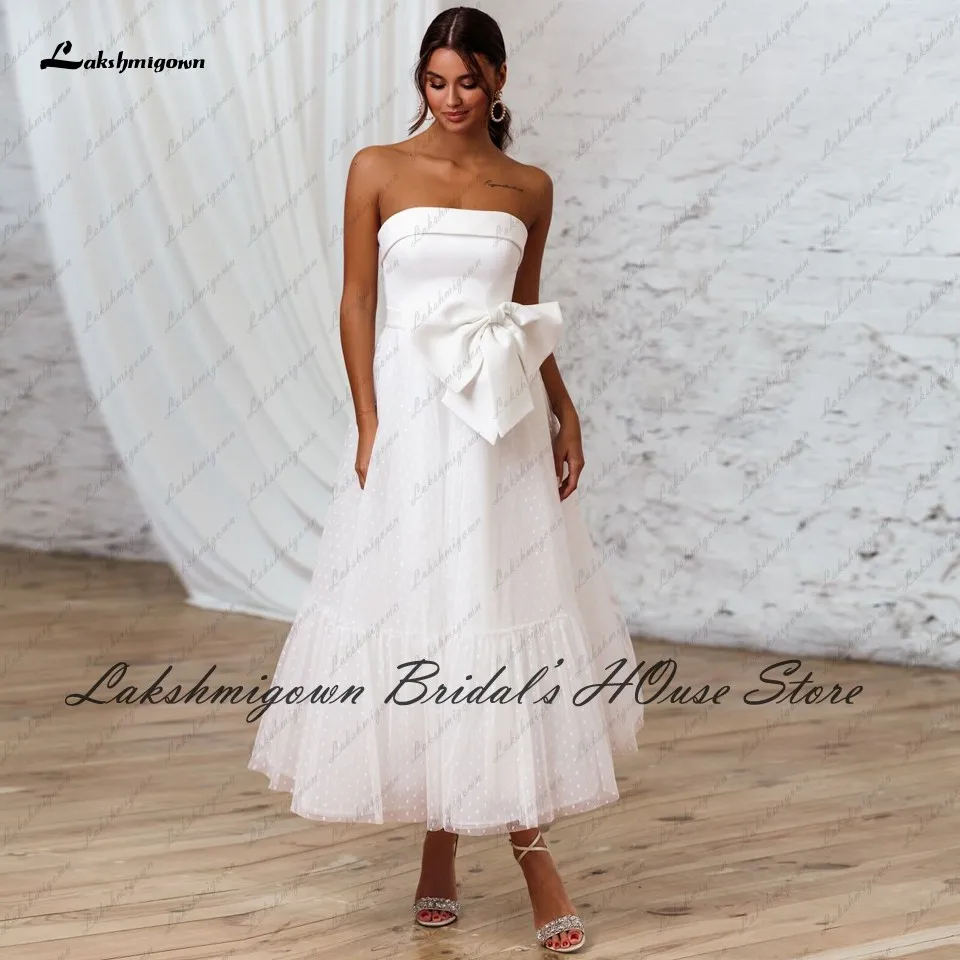 Винтажное свадебное платье Lakshmigown, платье невесты длиной ниже колена 2021, элегантные женские свадебные платья с открытыми плечами