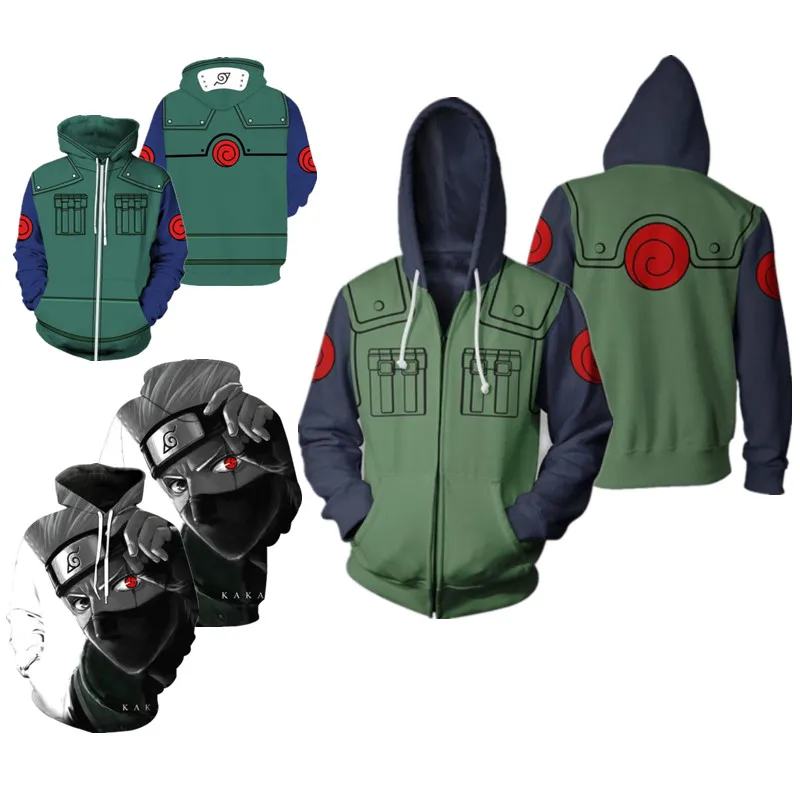 Толстовка и свитшот на молнии для косплея Kakashi, куртка, пуловер, пальто, уличная одежда, свободные костюмы в стиле хип-хоп для весны и осени и зимы