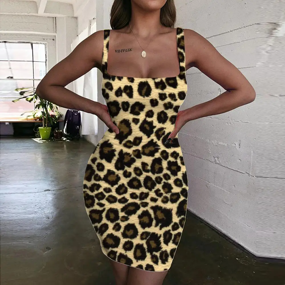 Женское платье с леопардовым принтом KYKU, леопардовое облегающее п...